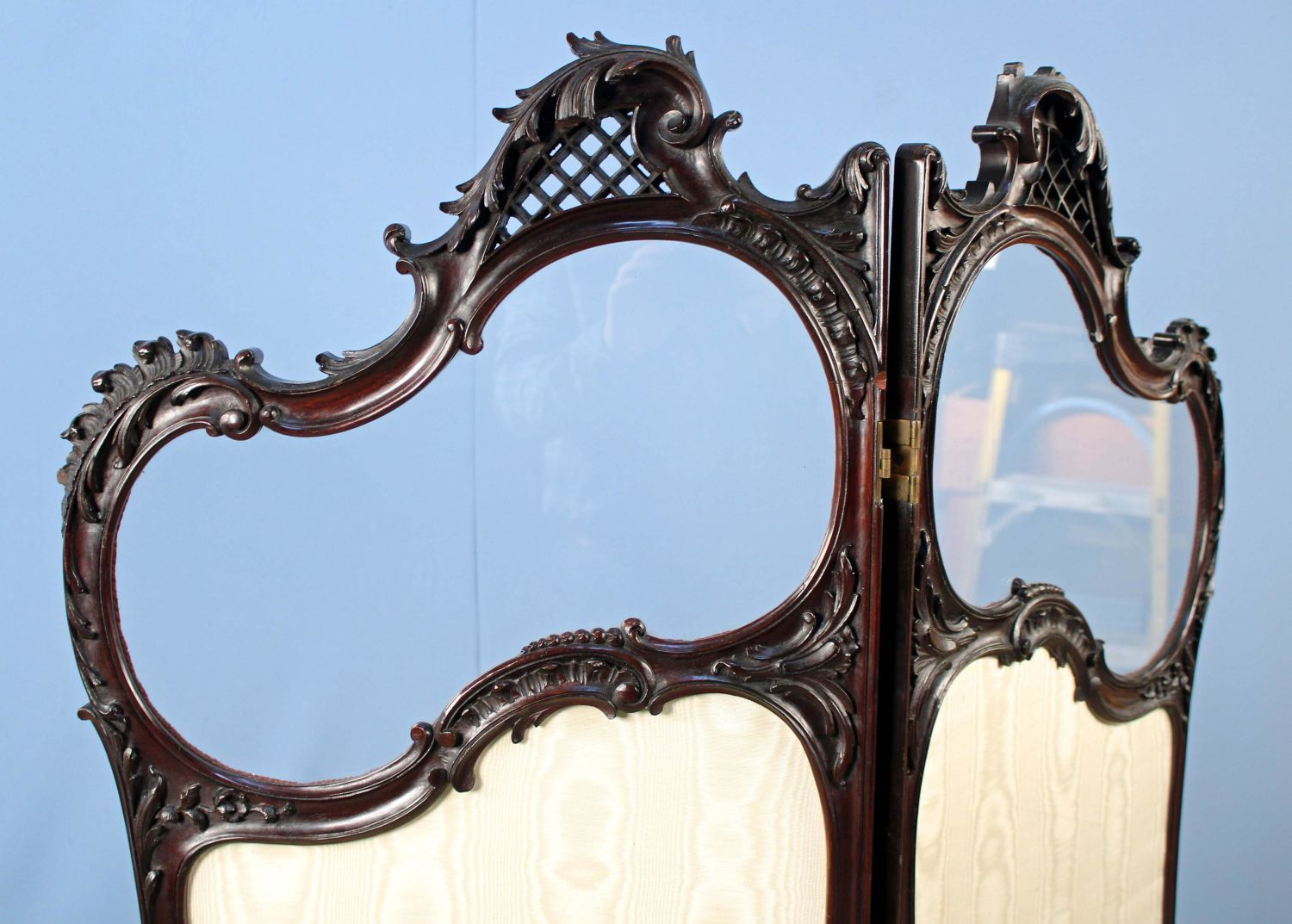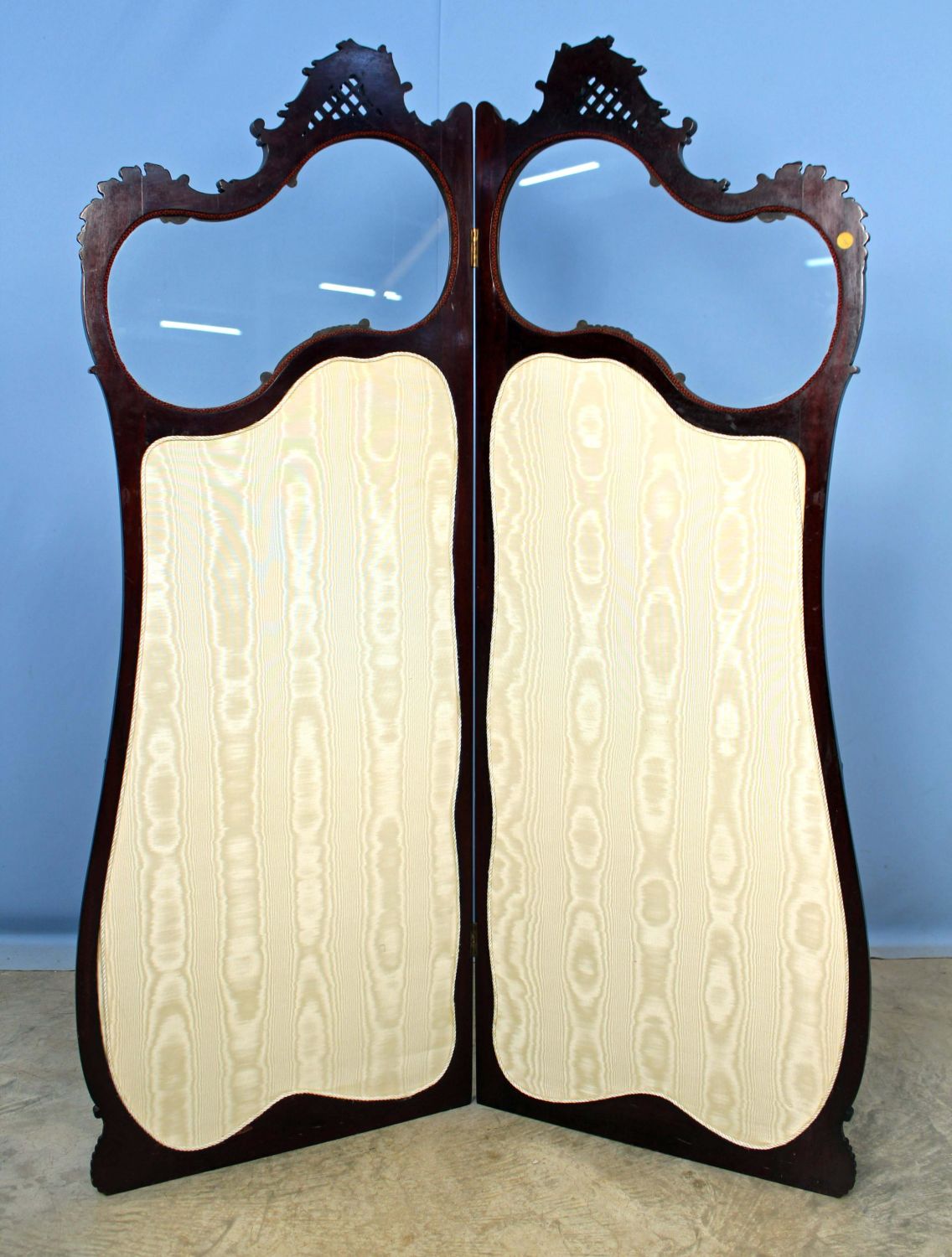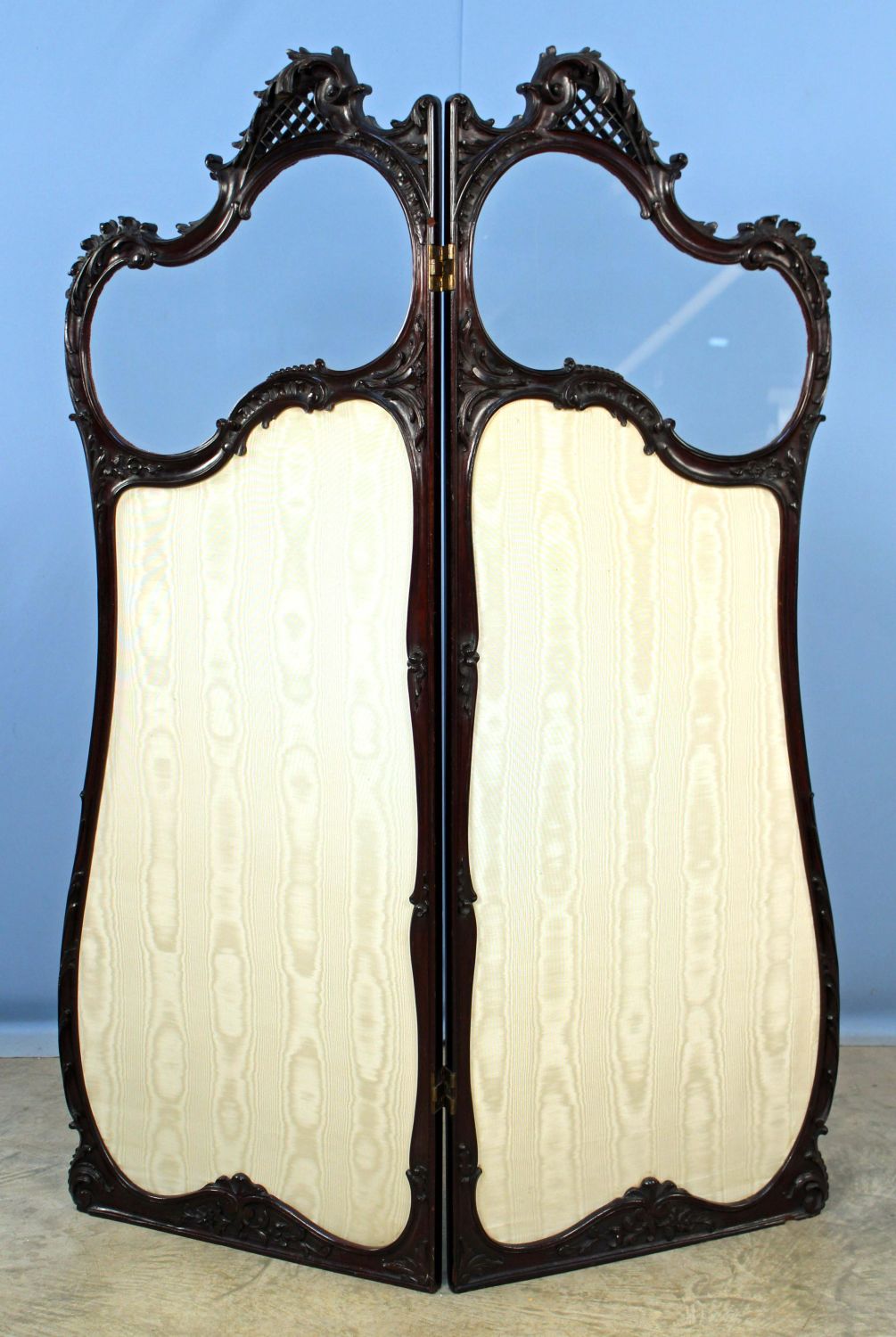 19th Century Mahogany French Rococo Child’s Dressing Screen. This screen looks to have originally been this height. The screen measures 58 1/2" H. X 41" Wide. Condition – The screen is in overall good condition with some small wood chips missing from frame. See Photos.
