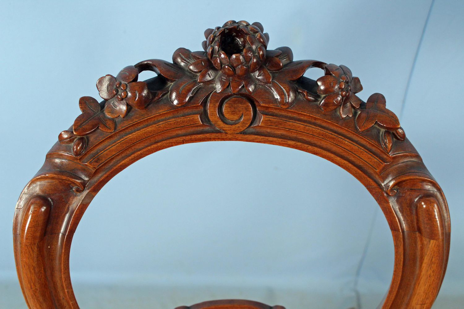 Pair of Walnut Flower Carved 19th Century Side Chairs. Measure 37 1/2" high x 19 1/2" wide x 23" deep. Condition- Chairs are in overall good condition. Chairs do have minor small joint separation. See photos.