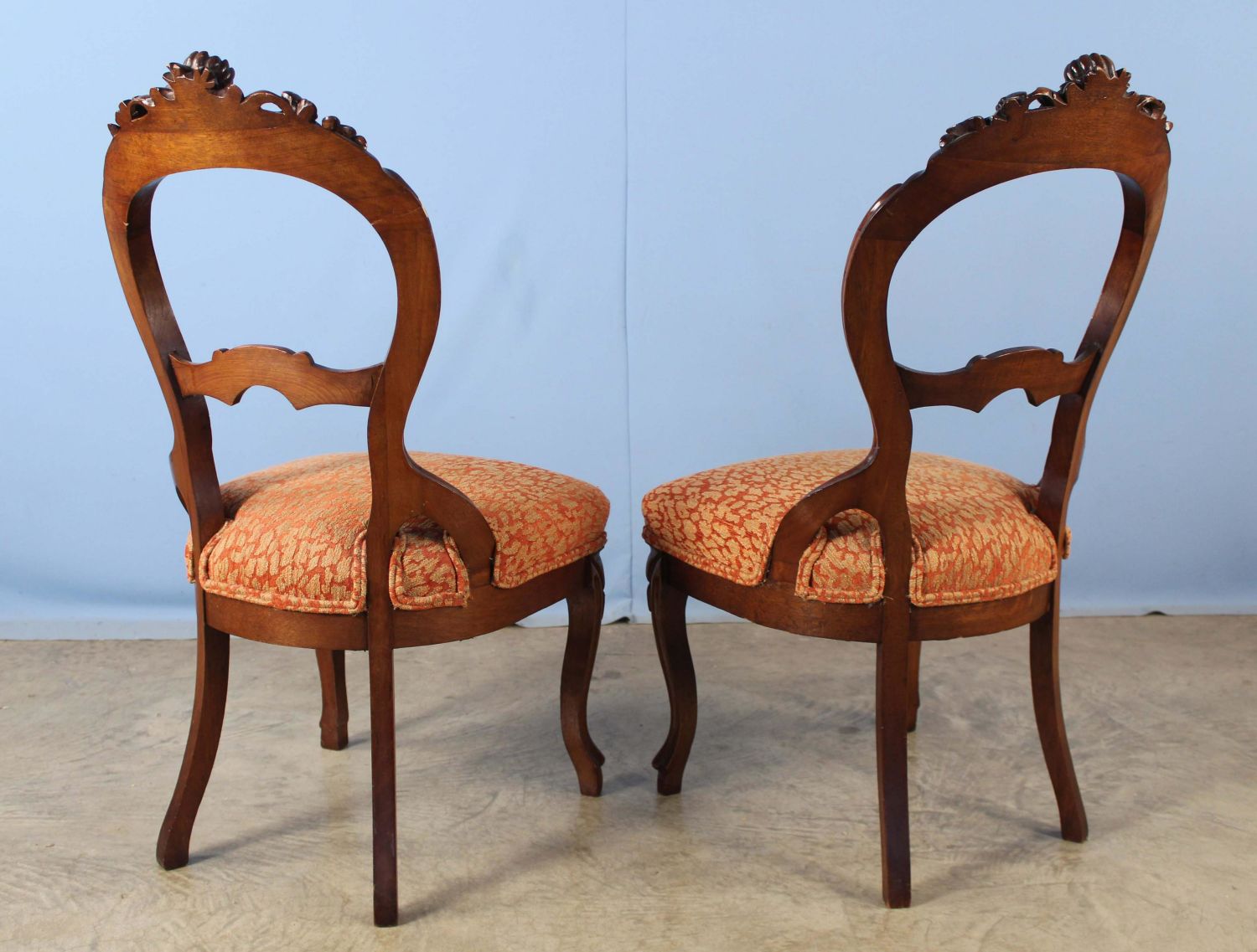 Pair of Walnut Flower Carved 19th Century Side...