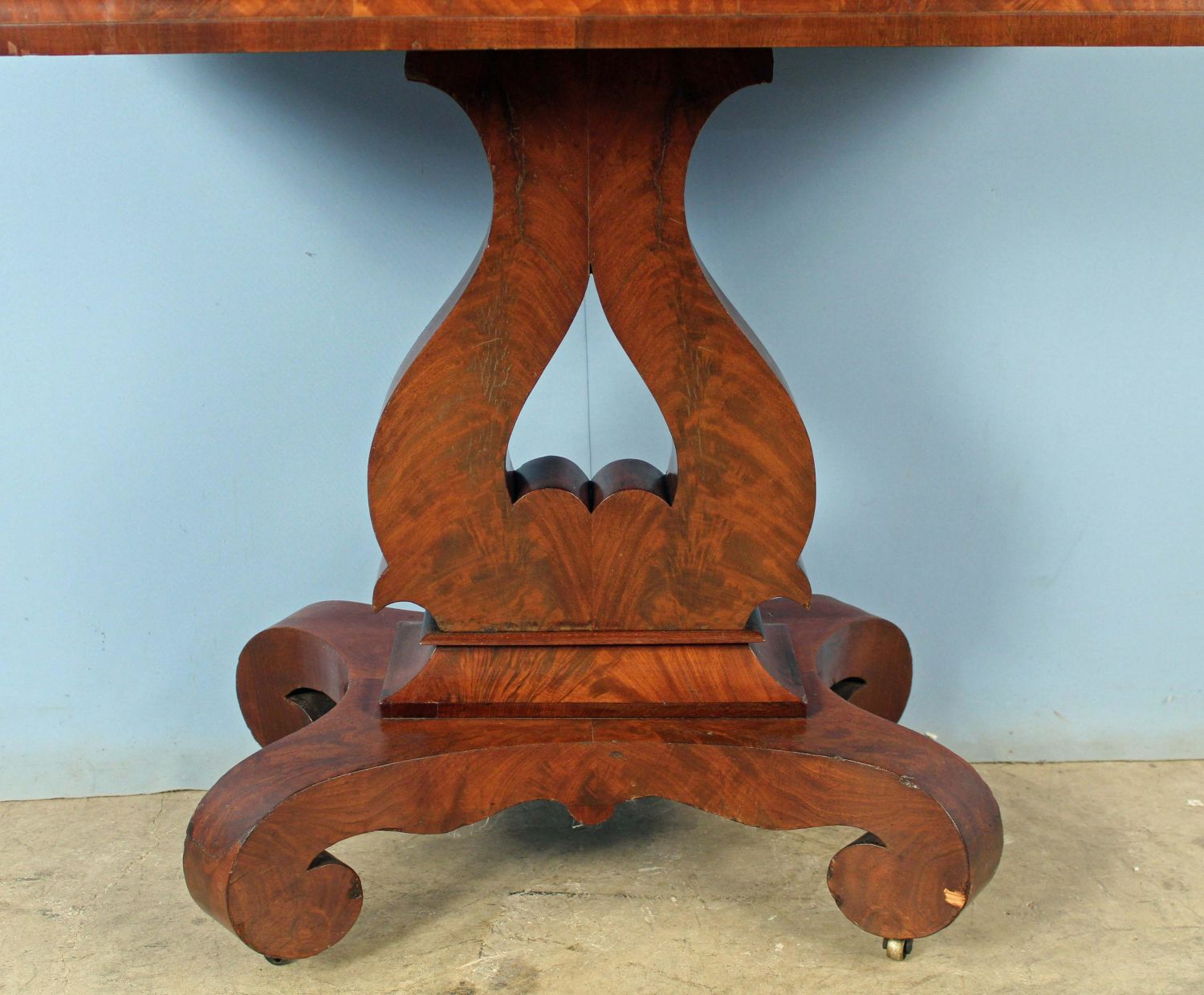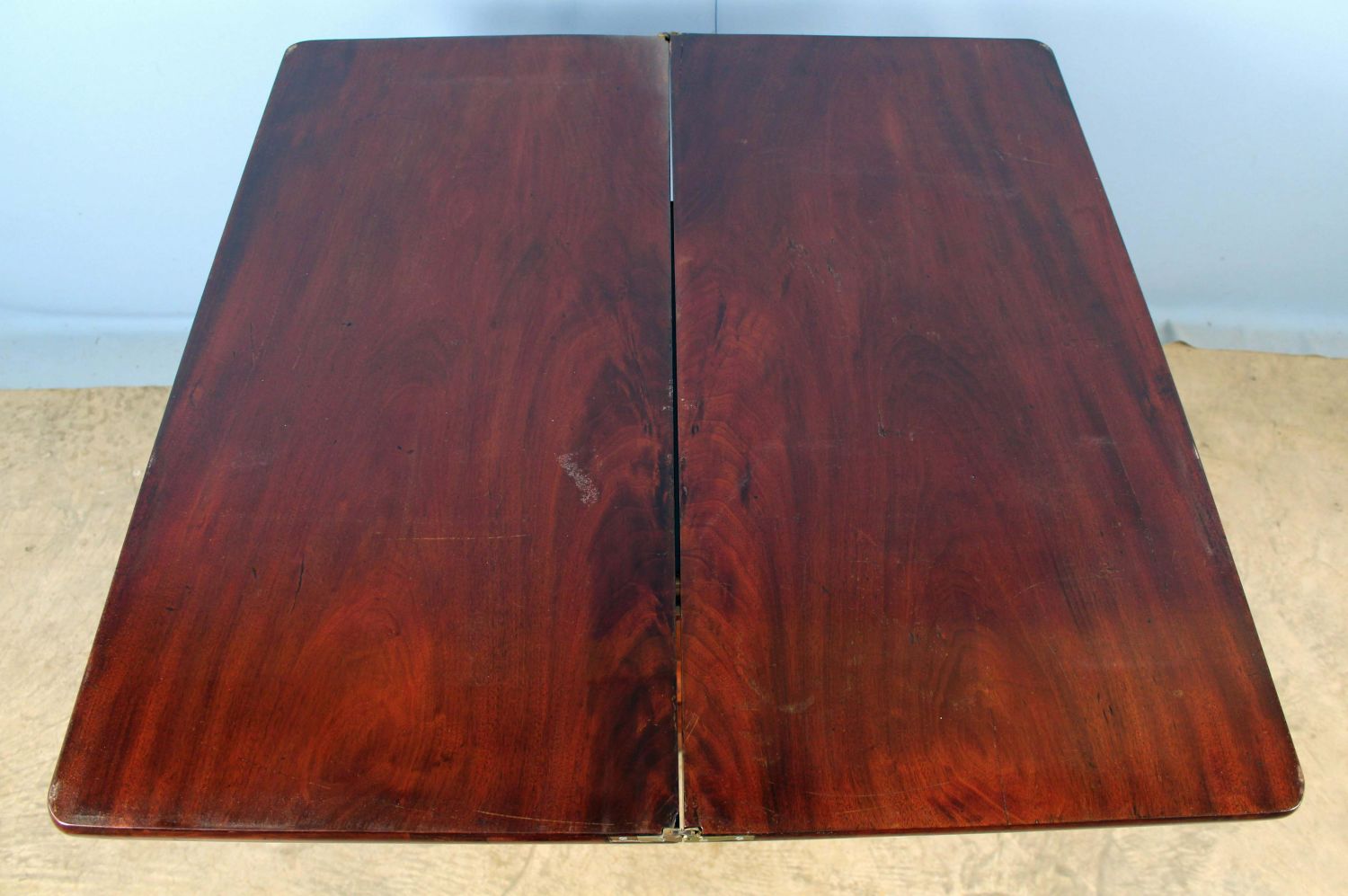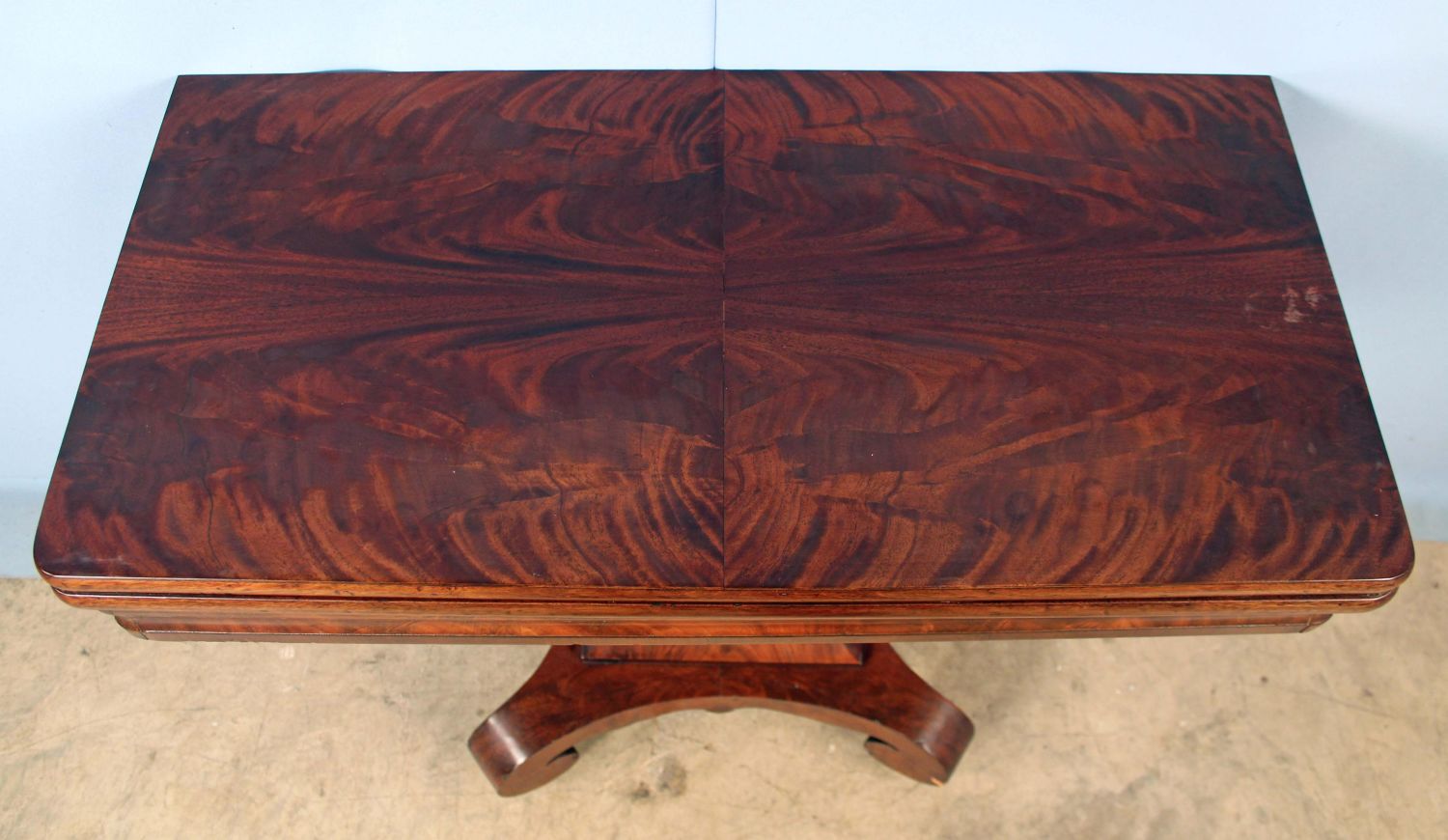Mahogany Game Table Circa 1840. Top folds and turns to form 33" deep. Unfolded the table measures 29 3/4" high x 33 3/4" wide x 16 1/2" deep. Condition- Table is in good condition. Top does have some wear, scuffs, scratches, etc. (could possibly be polished out). See photos.