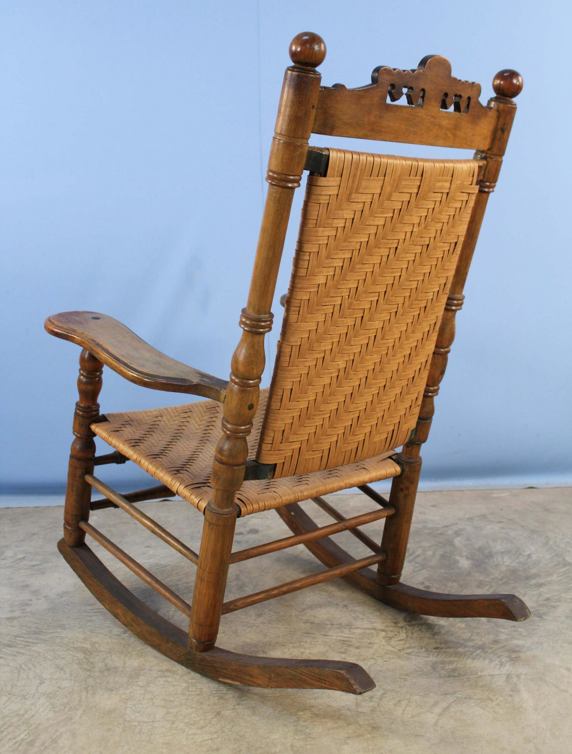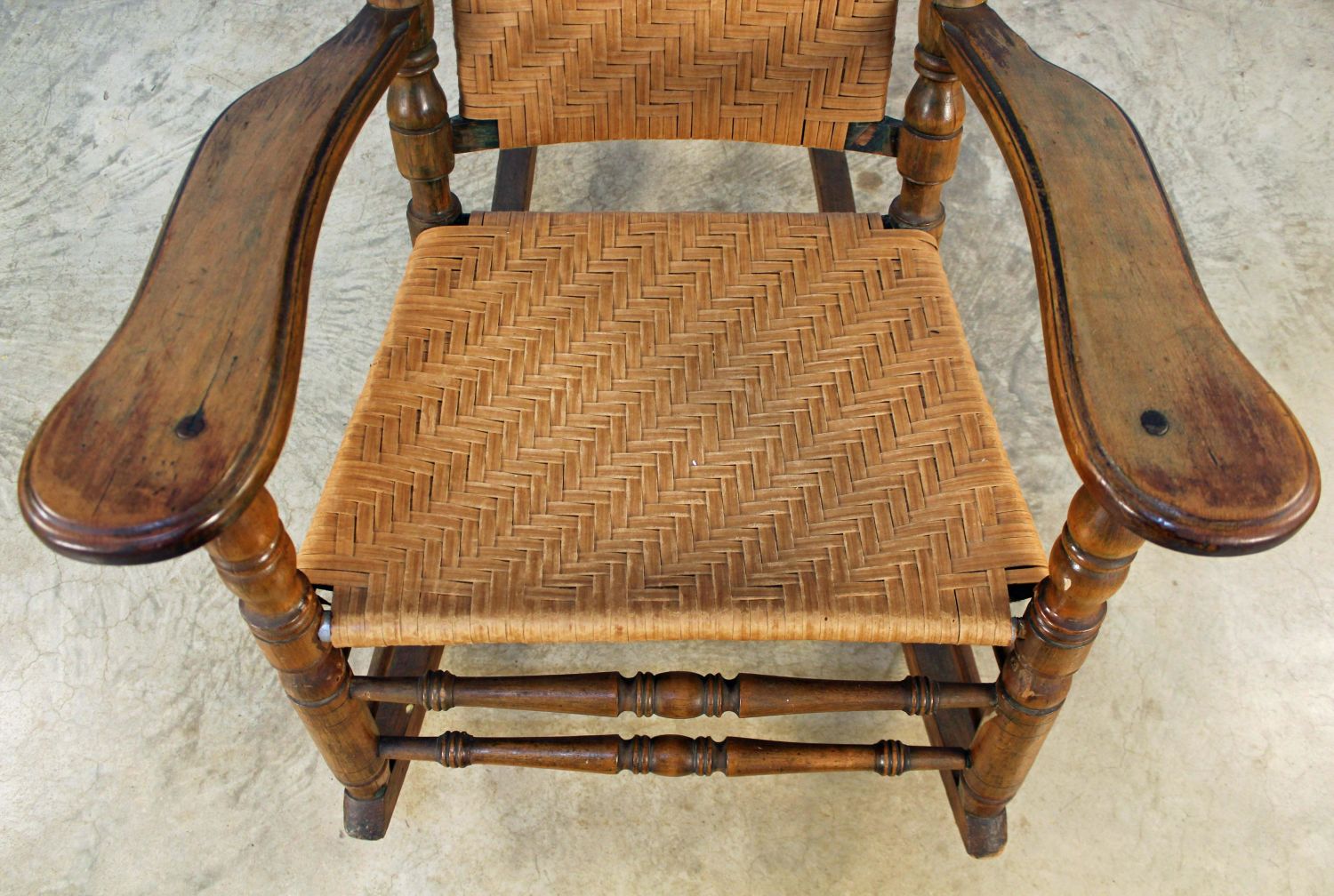 19th Century Porch Rocking Chair with Woven Seat...