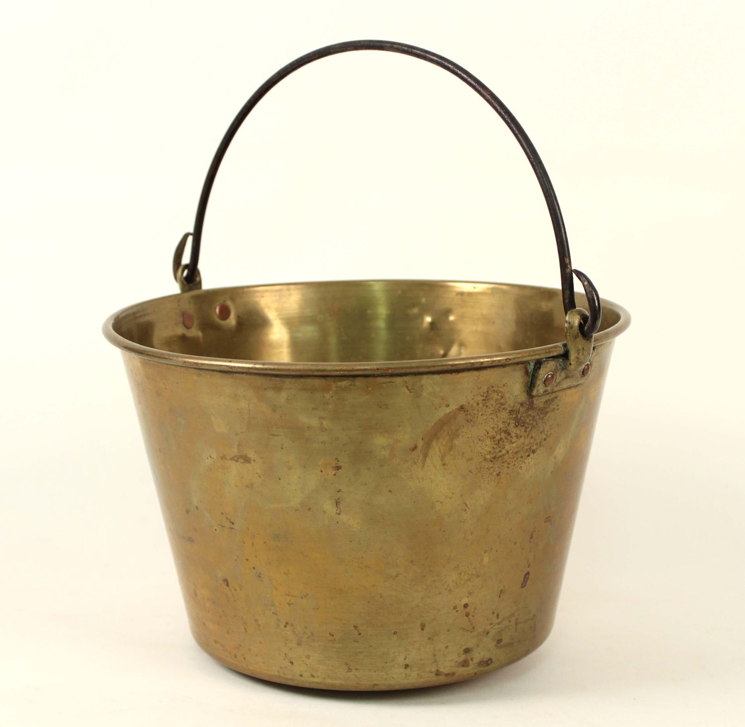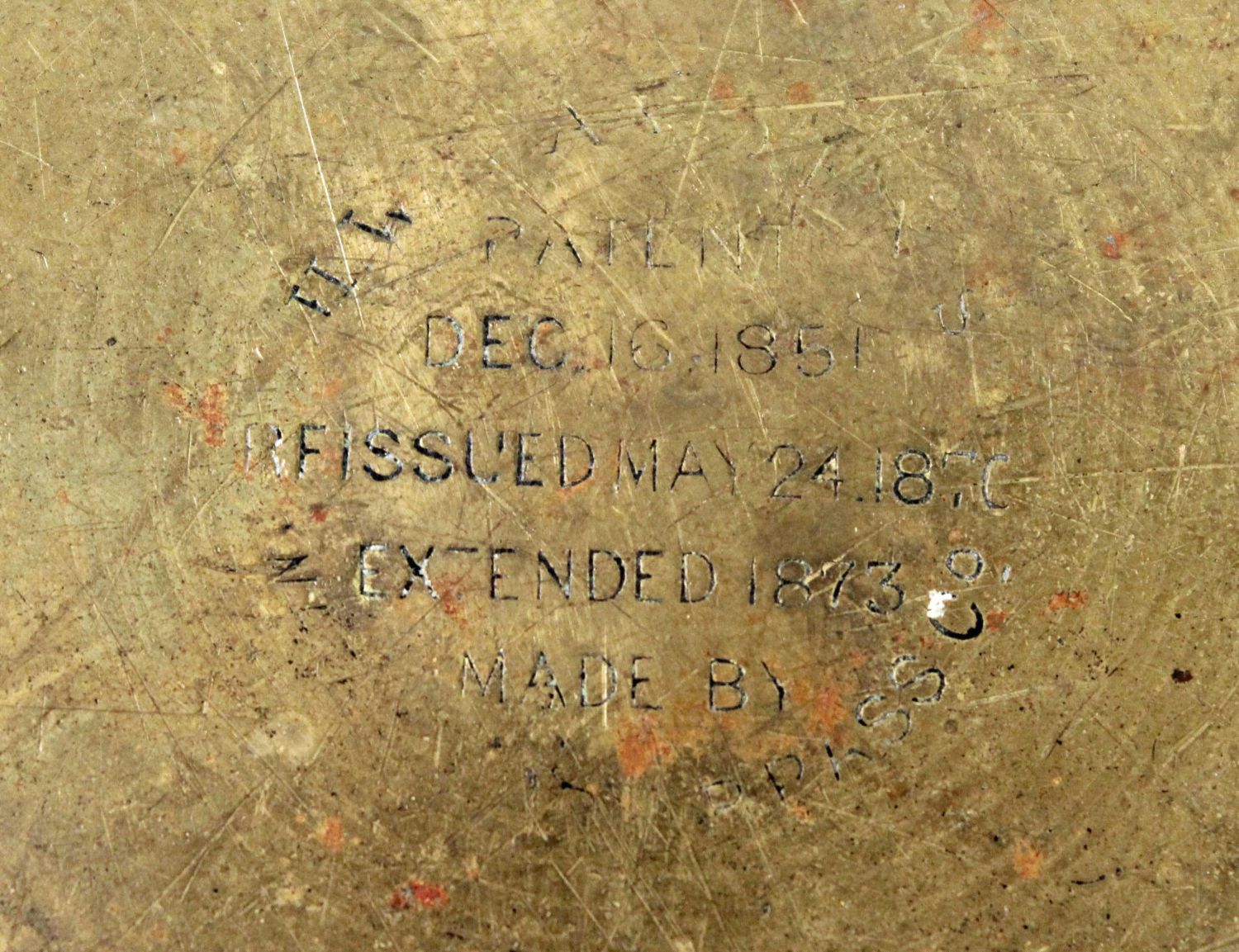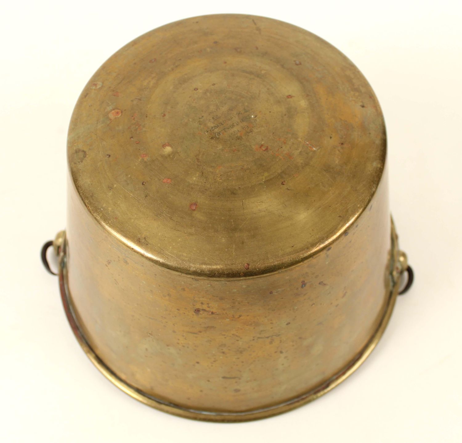 Waterbury Brass Co. Brass Bucket 1873. This bucket is stamped on base "H.W. Hayden Brass, Dec. 16, 1851 reissued May 2, 1870 extended 1873 Made by Waterbury Brass Co." Measures 7" high x 11" dia. Condition- Bucket does have some dents and scratches but is in overall good condition. See photos.
