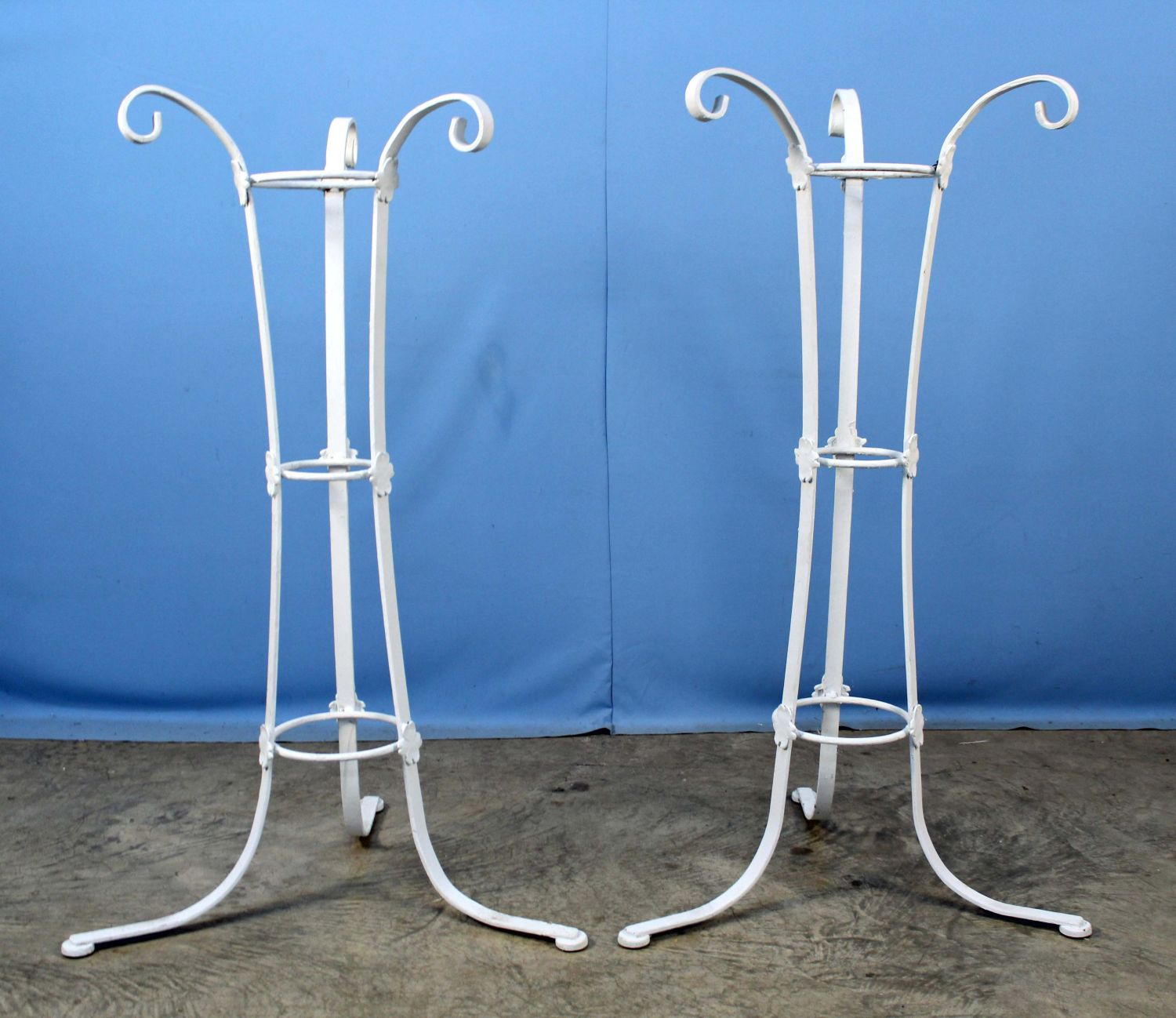 Pair of White Wrought Iron Plant Stands. Measures 45 1/4" high. Condition- Plant stands are in good condition. See photos.