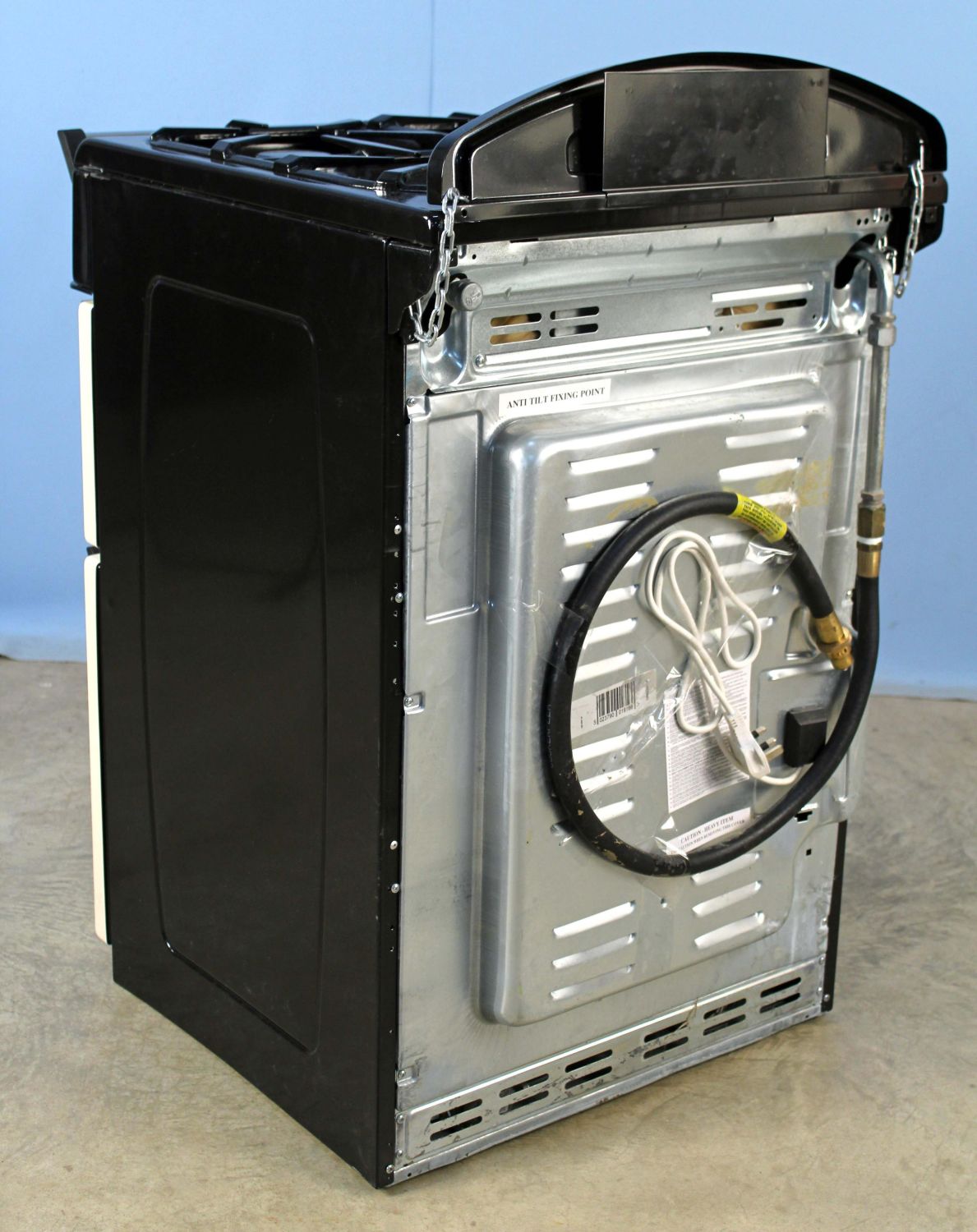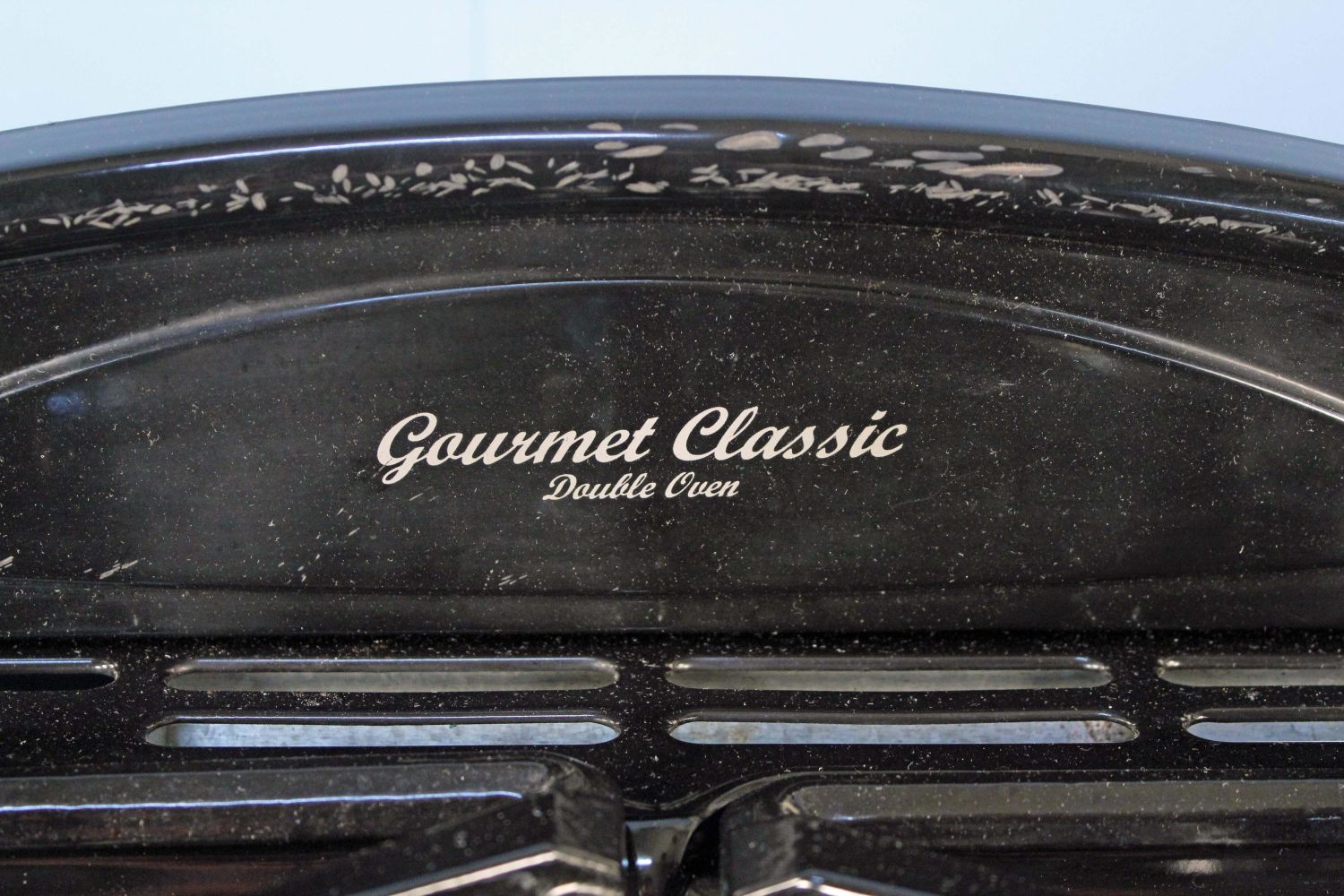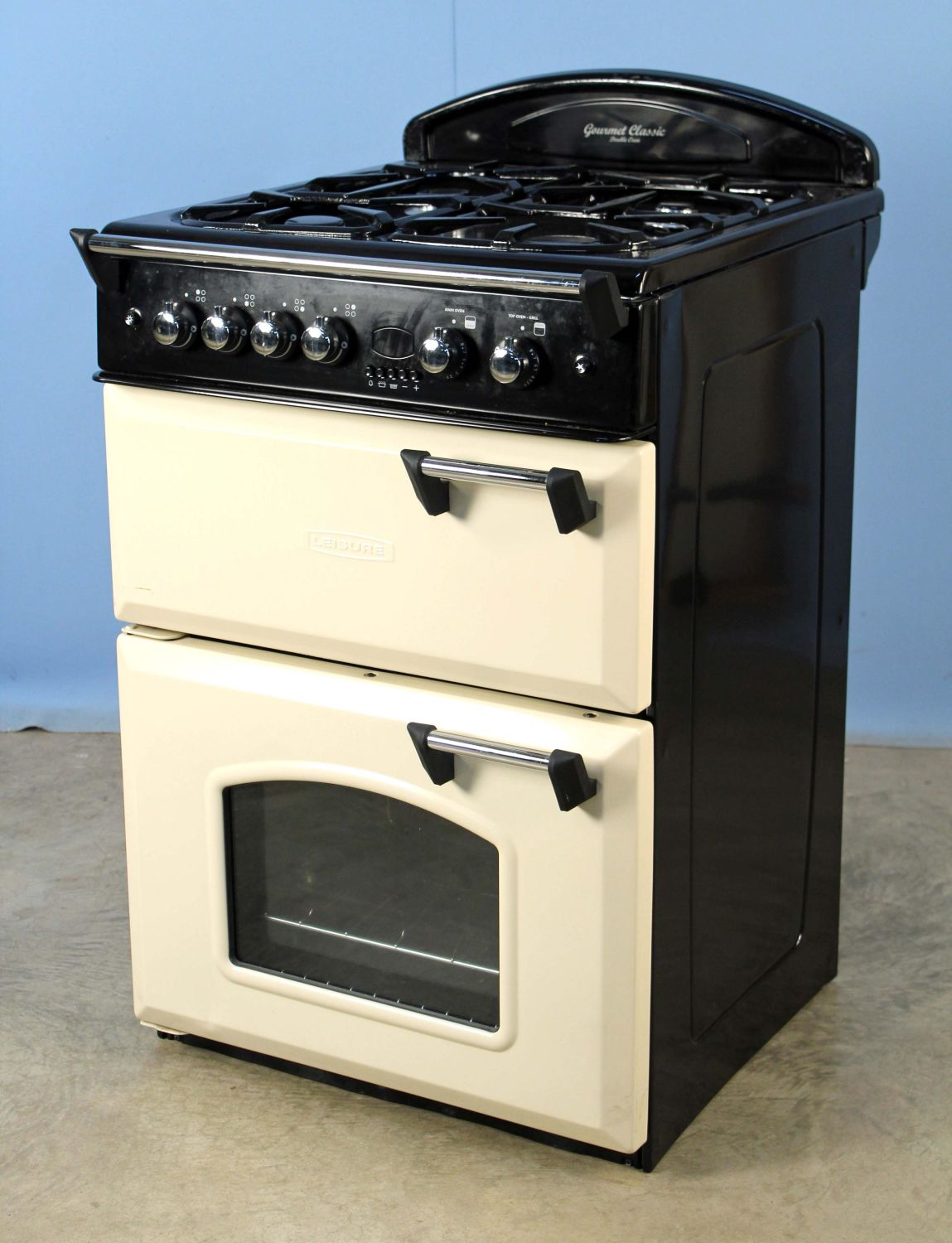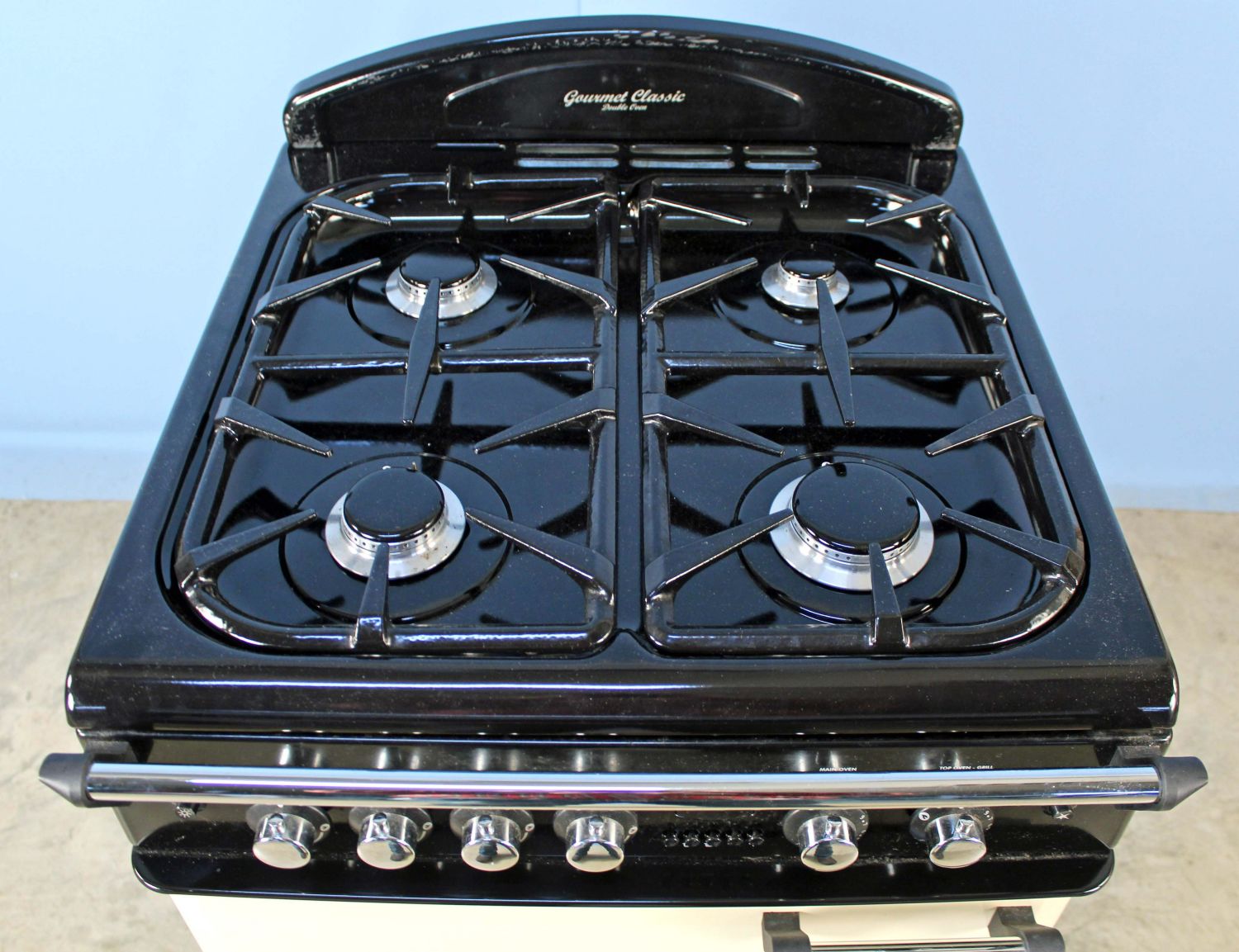 Leisure Gourmet Classic Gas UK Range w/ Double Oven. This stove uses United Kingdom, European G20, 20 mbar gas. This stove will not attach to or work with standard liquid propane or natural gas without conversions. Stove should be inspected by a professional before installation. Measures 39 3/4" high x 23 1/2" wide x 25" deep. Condition- Stove should be inspected by a professional before installation. Back cover of range has a large dent. See photos.