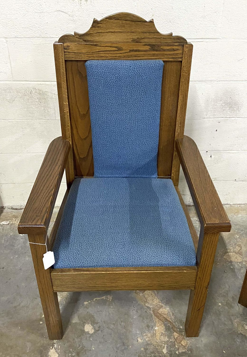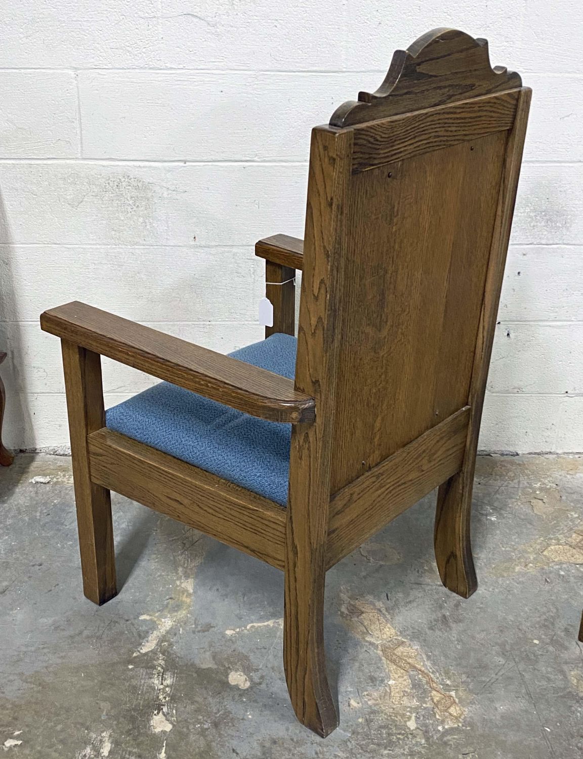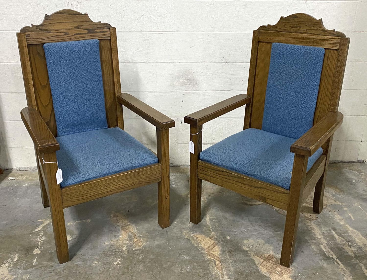 Pair of Oak Deacon Armchairs. Measures 45 3/4" high x 26" wide x 23" deep. Condition- Armchairs are in overall good condition. See photos.