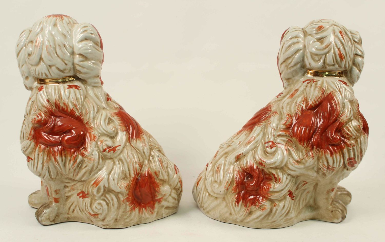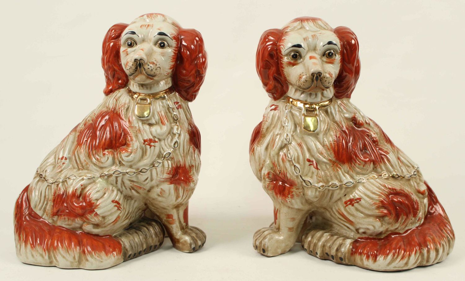 Pair of 20th Century 13" High Staffordshire Dogs. Measure 13" high x 11". Condition- Dogs are in good condition with no chips or cracks. See photos.