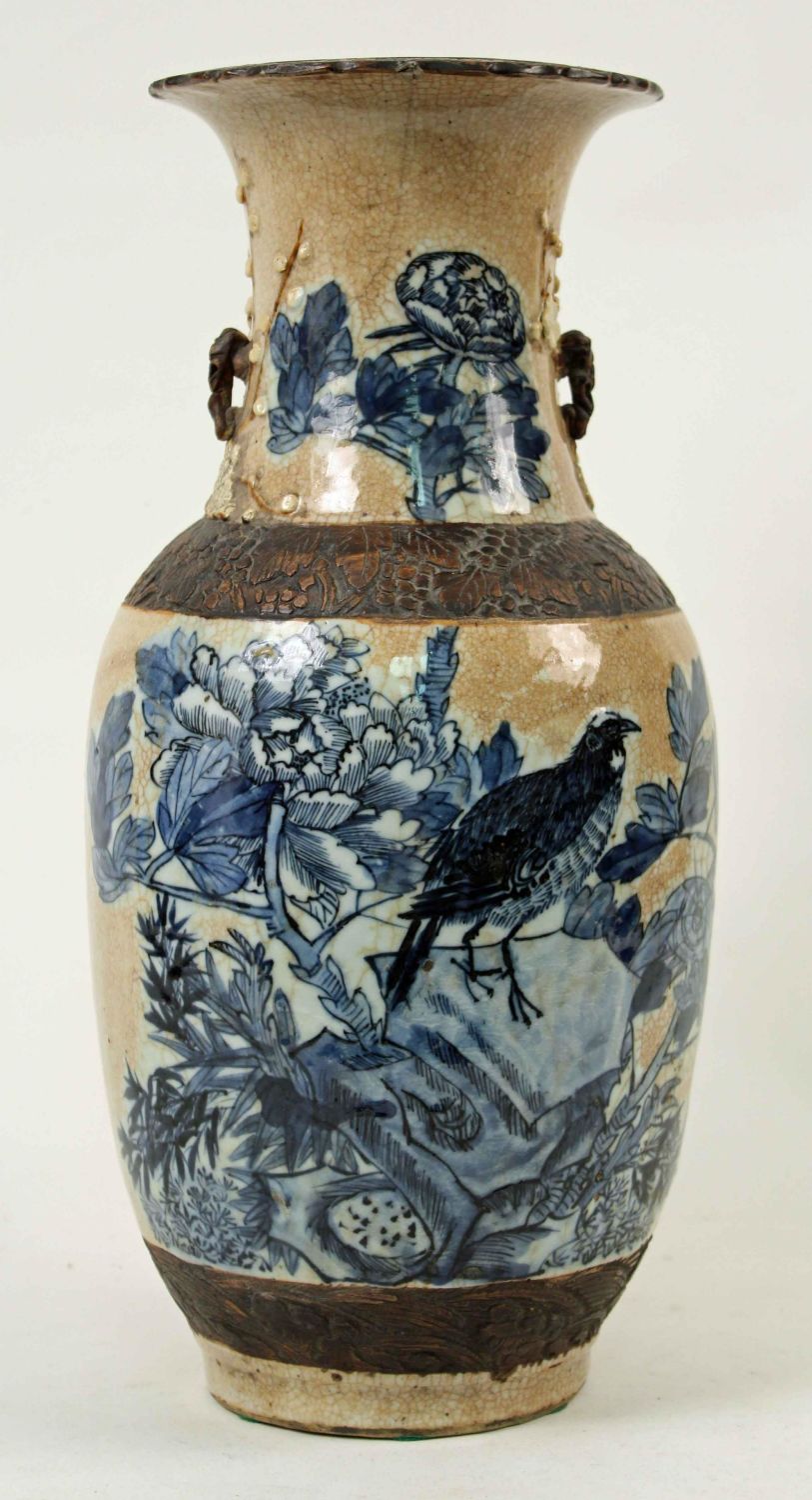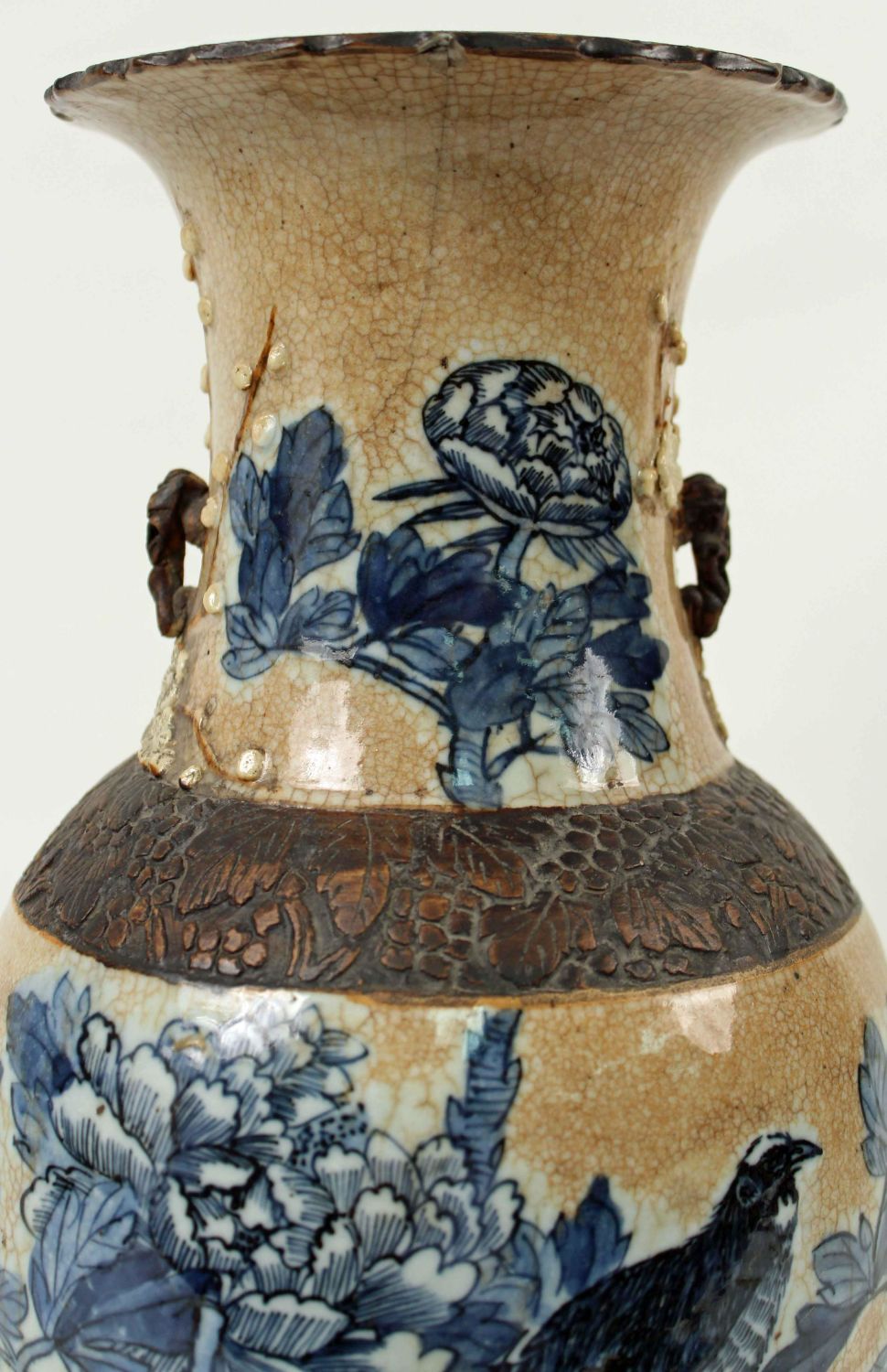 Chinese Porcelain Blue and White Vase with Birds, Chenghua Mark On Base. Measures 18" high x 8 1/2" dia. Exact age is unknown. We believe this vase to be from the 19th Century. Condition- Overall good condition. Rim has four small chips and two hairline cracks. Glaze has overall crackle. Base has one chip (possibly from manufacturing).