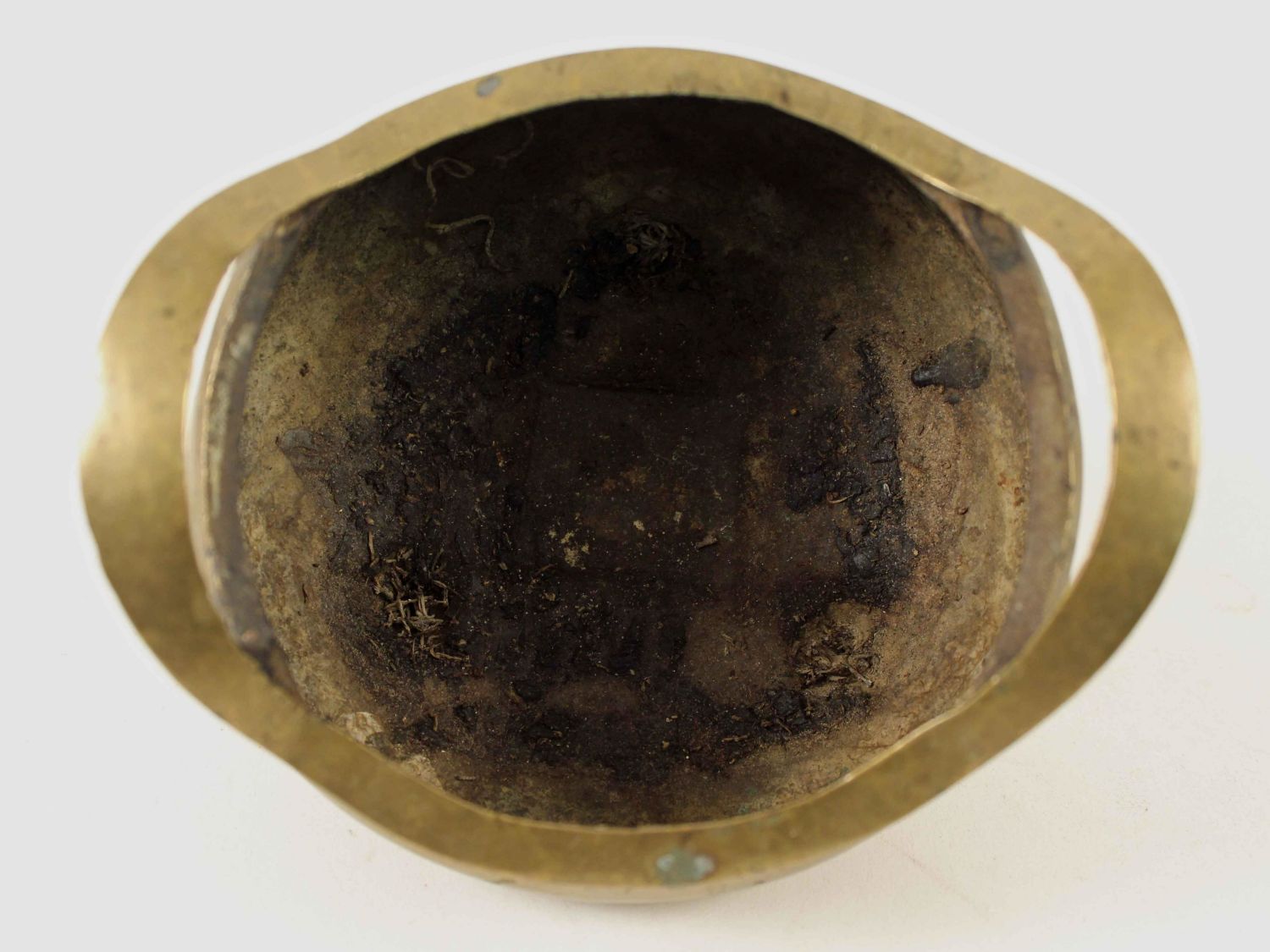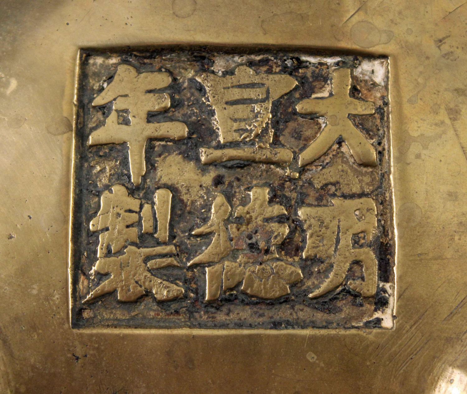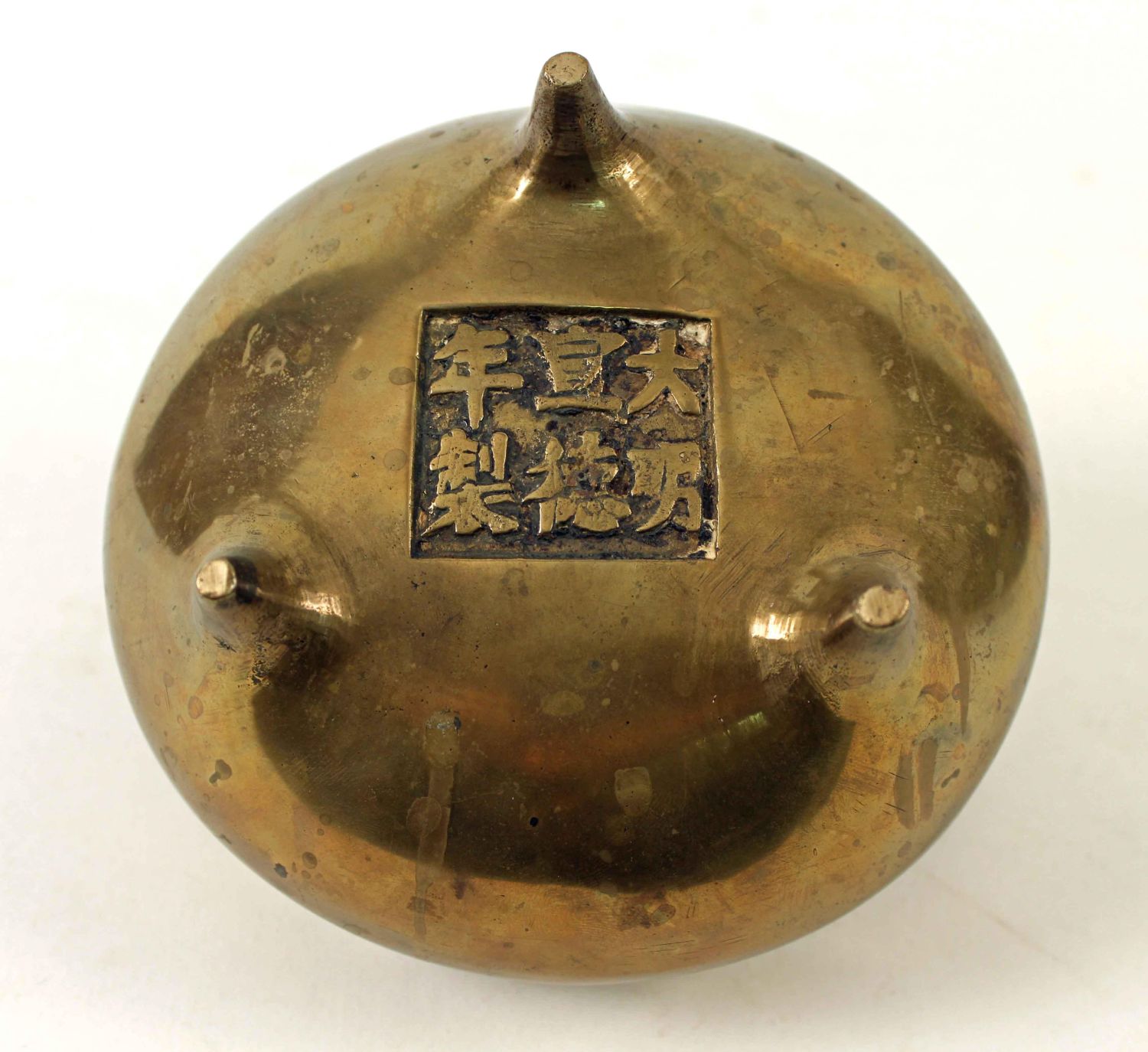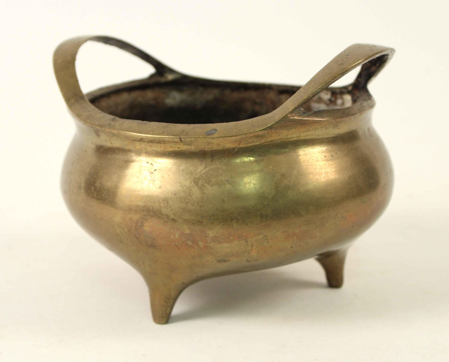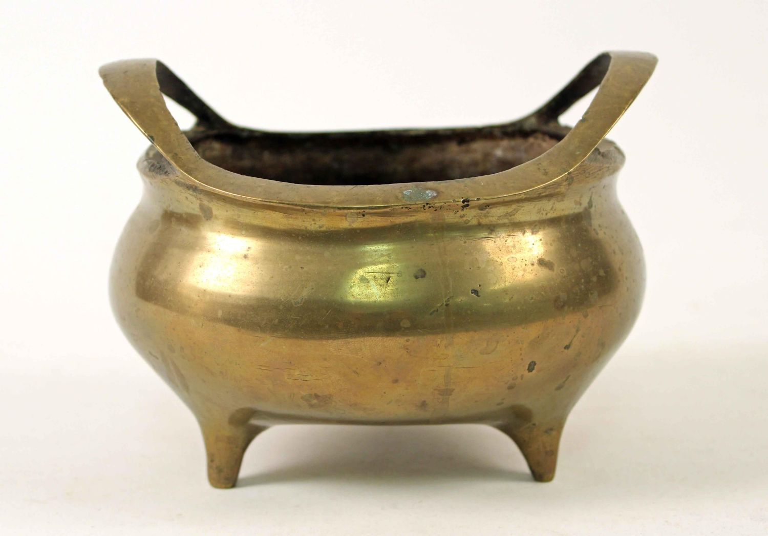 Chinese Bronze Censer Circa 1820. Censer is stamped with Ming Xuande marks. Measures approx. 4 3/4" high x 6 3/8" x 5 1/2". Condition- Censer is in overall good condition. The interior has staining and the exterior has some older polish.