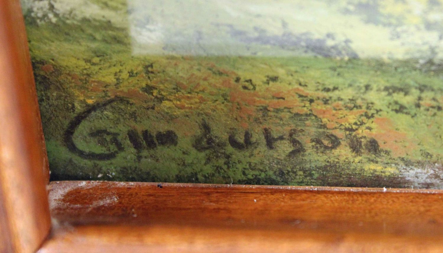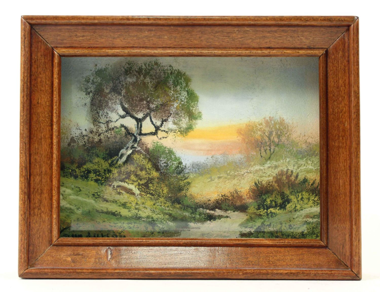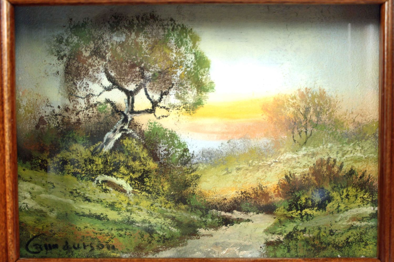 Andrew Gunderson (1888-1964) Pastel Landscape. This is a high quality miniature landscape in what appears to be the original shadowbox frame. Signed lower left, "Gunderson." Landscape measures 5 3/4" x 7 1/2". Condition- Landscape and frame are in good condition. See photos.