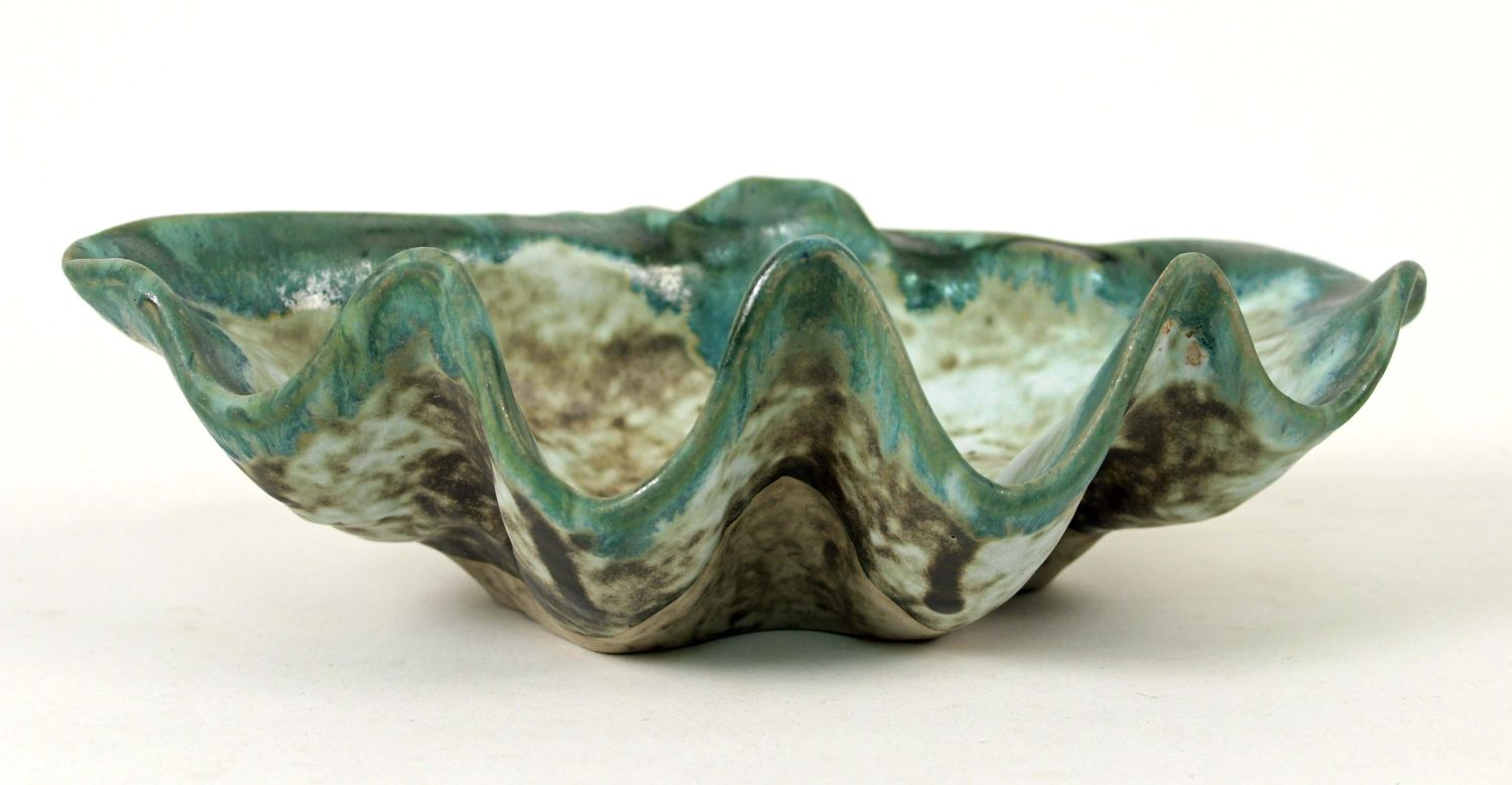 McCarty Pottery Large Jade Sea Shell. Signed McCarty...