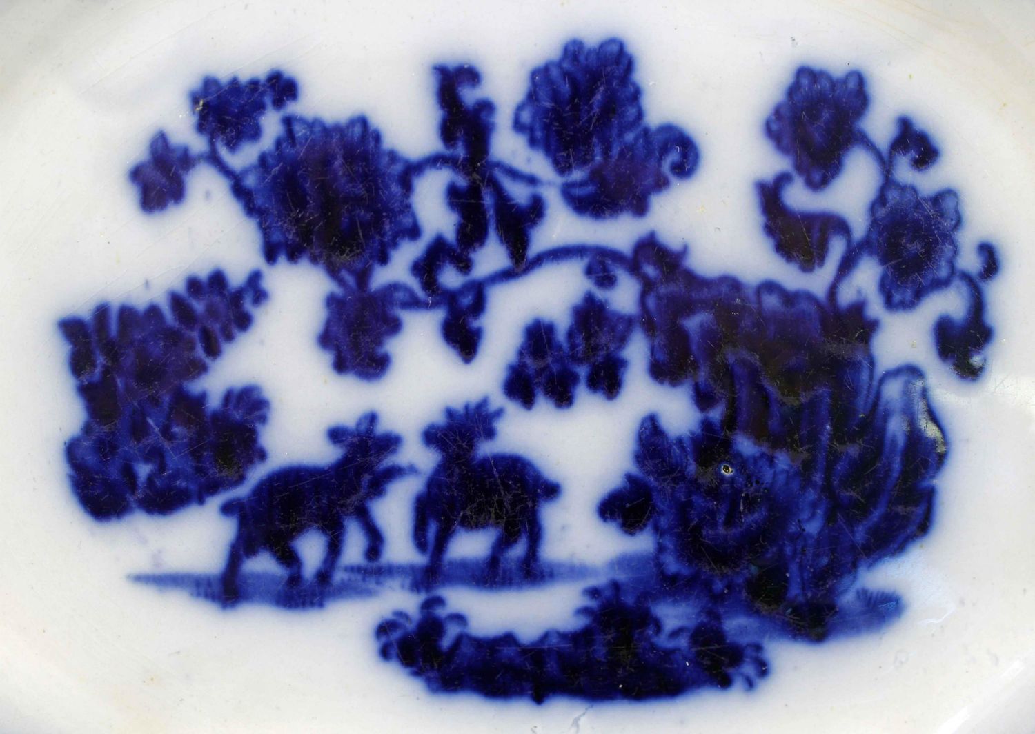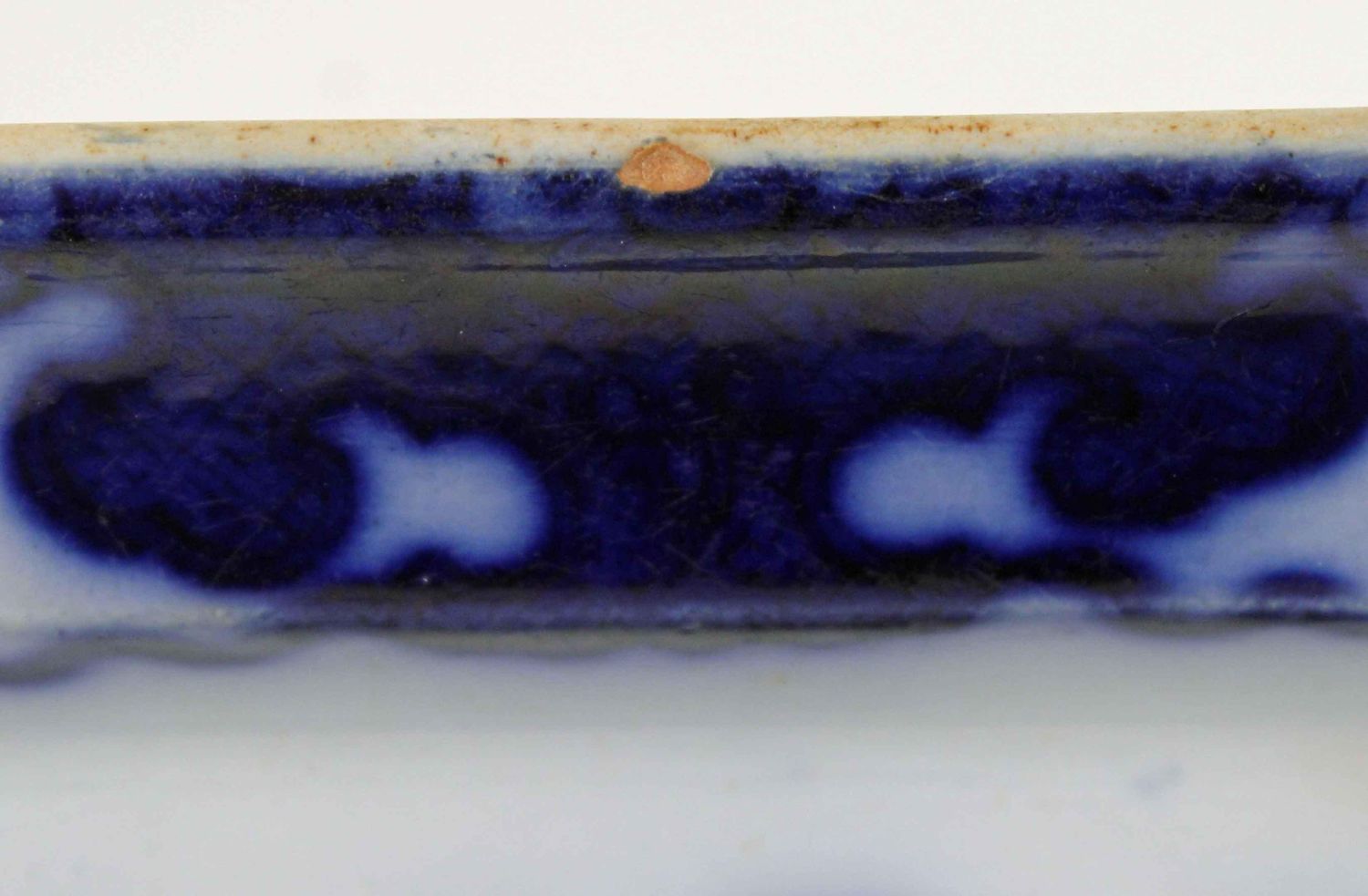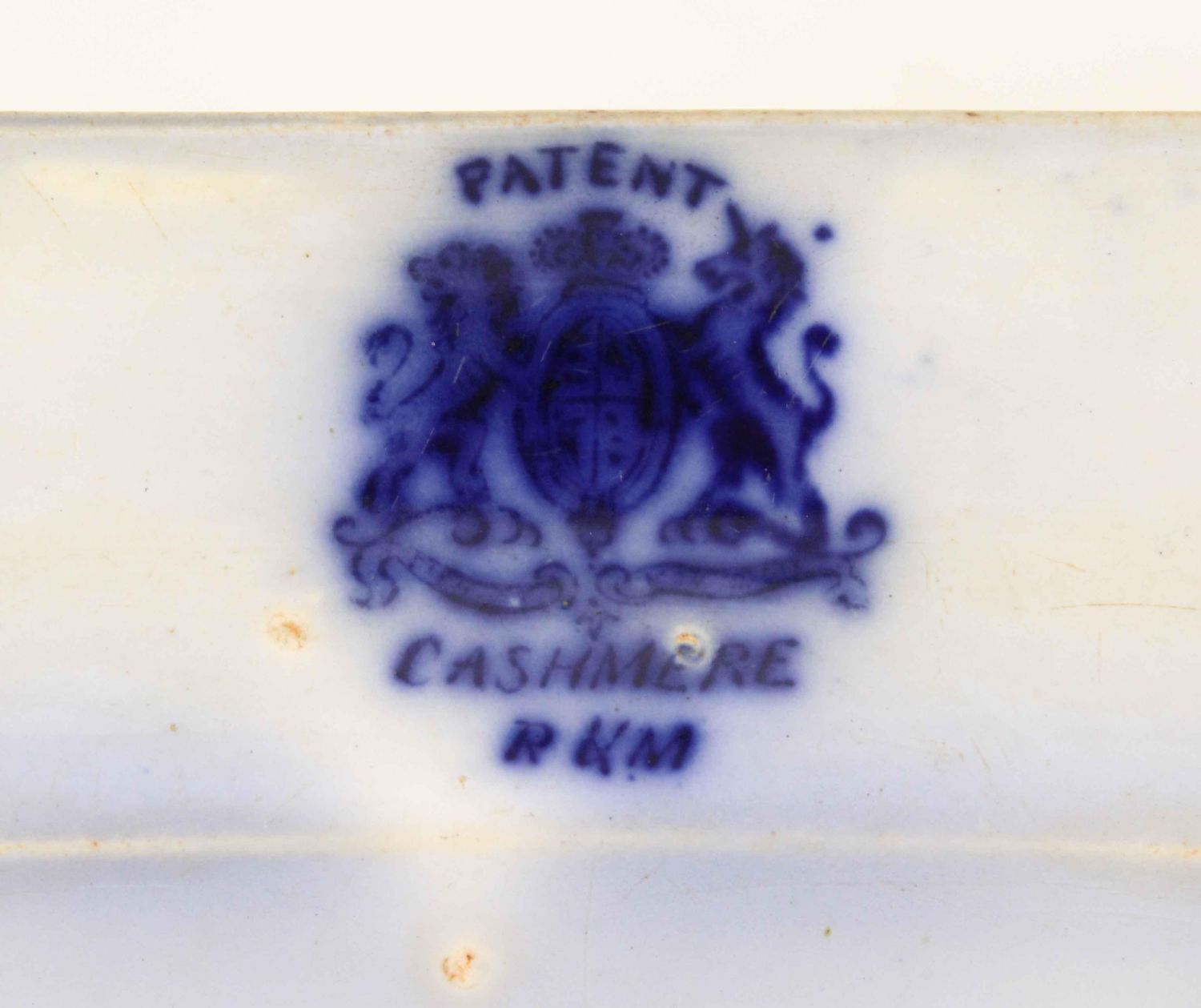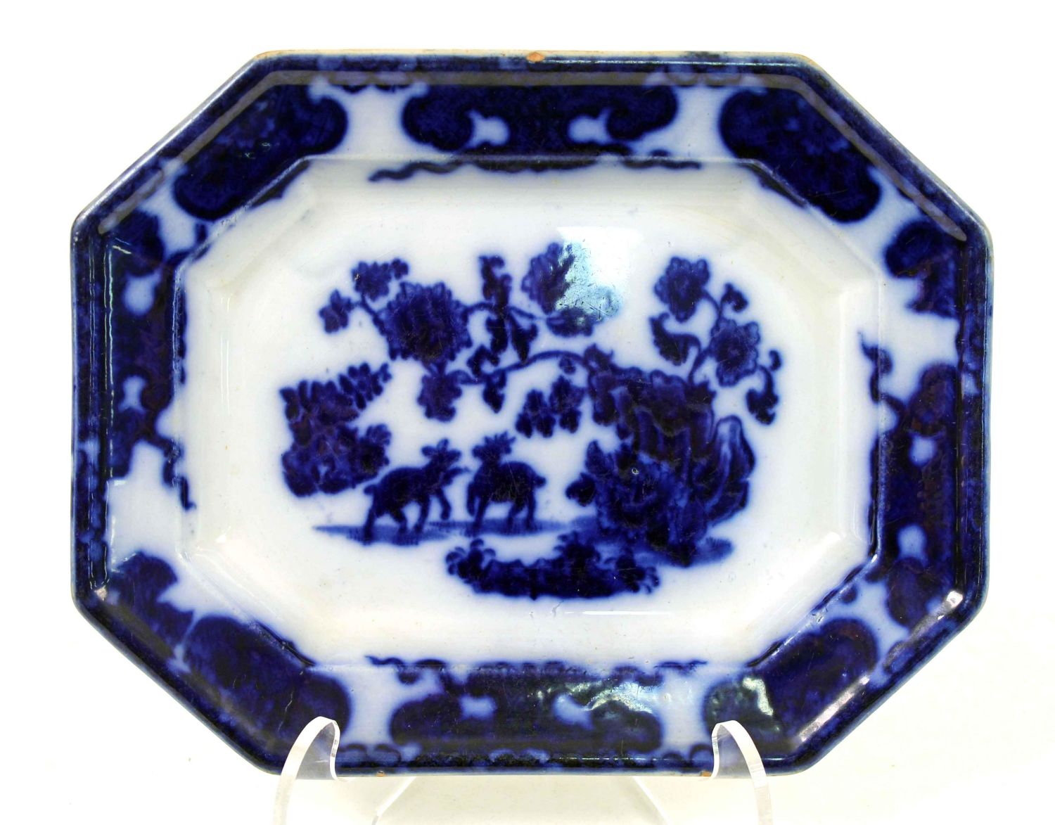 Flow Blue Cashmere Pattern 10" Tray By Ridgway and Morley Circa 1840s. Measures 7 3/4" x 10". Condition- Tray has crackle, two small chips on rim, scratches, wear, etc. See photos.