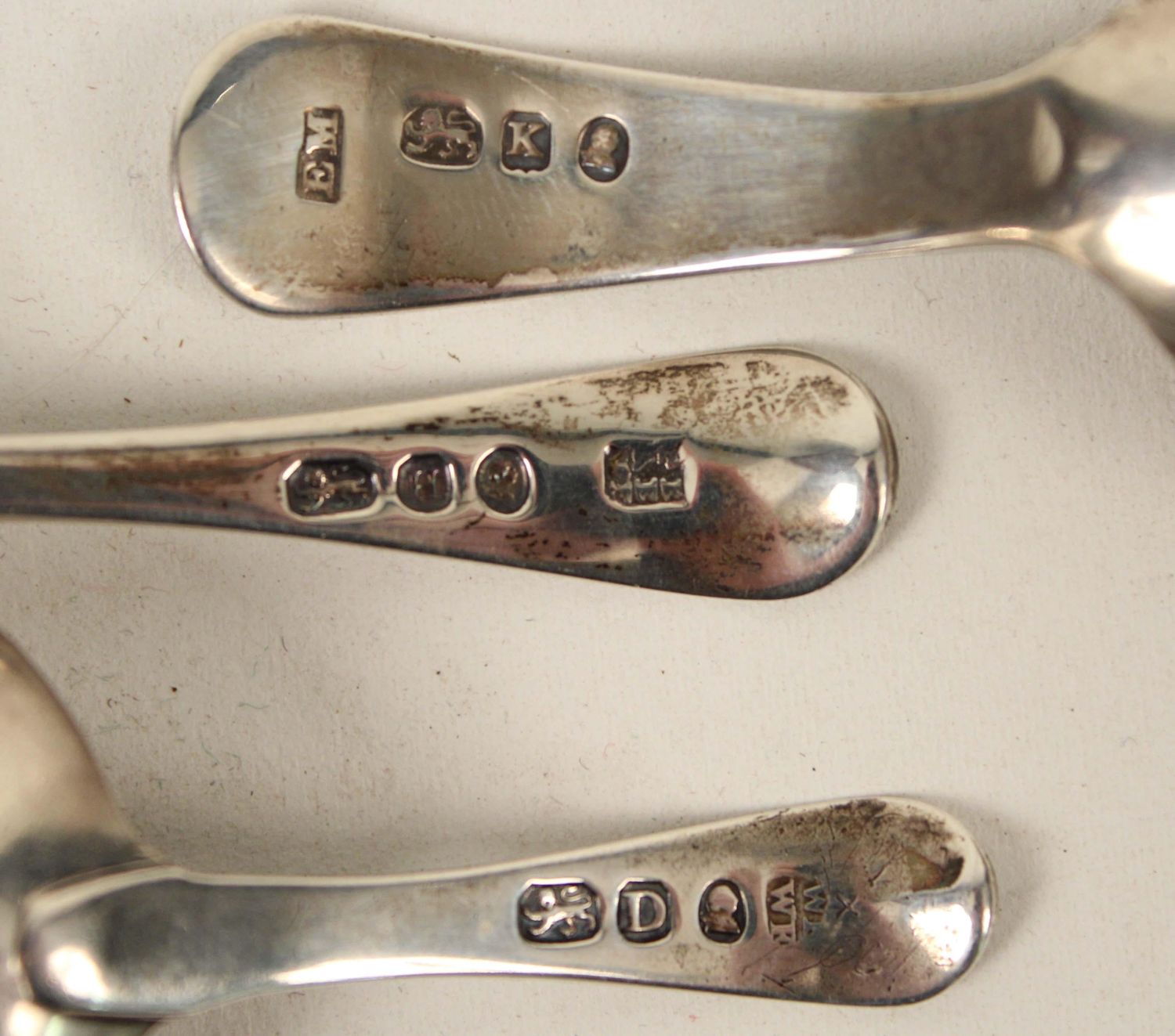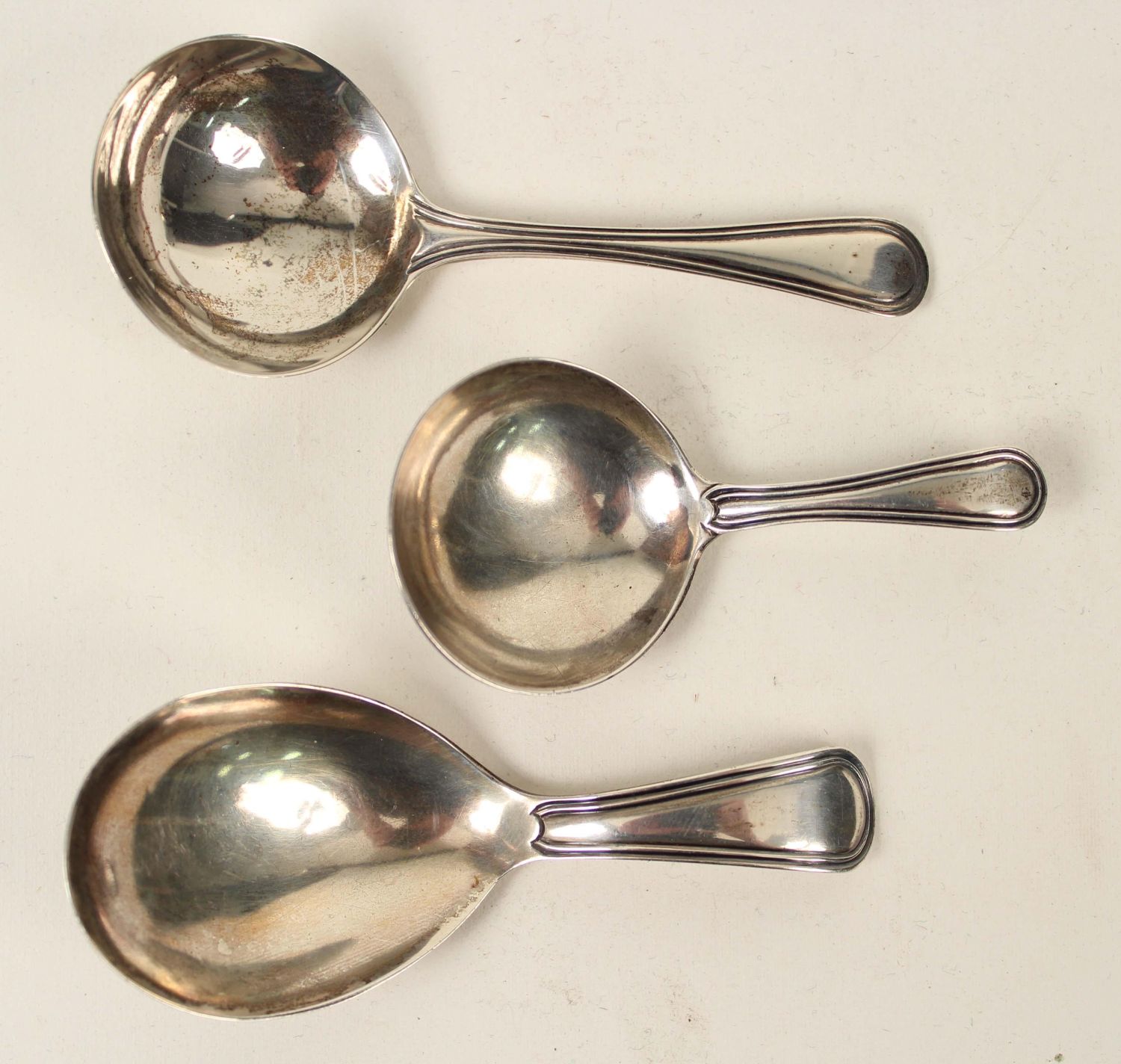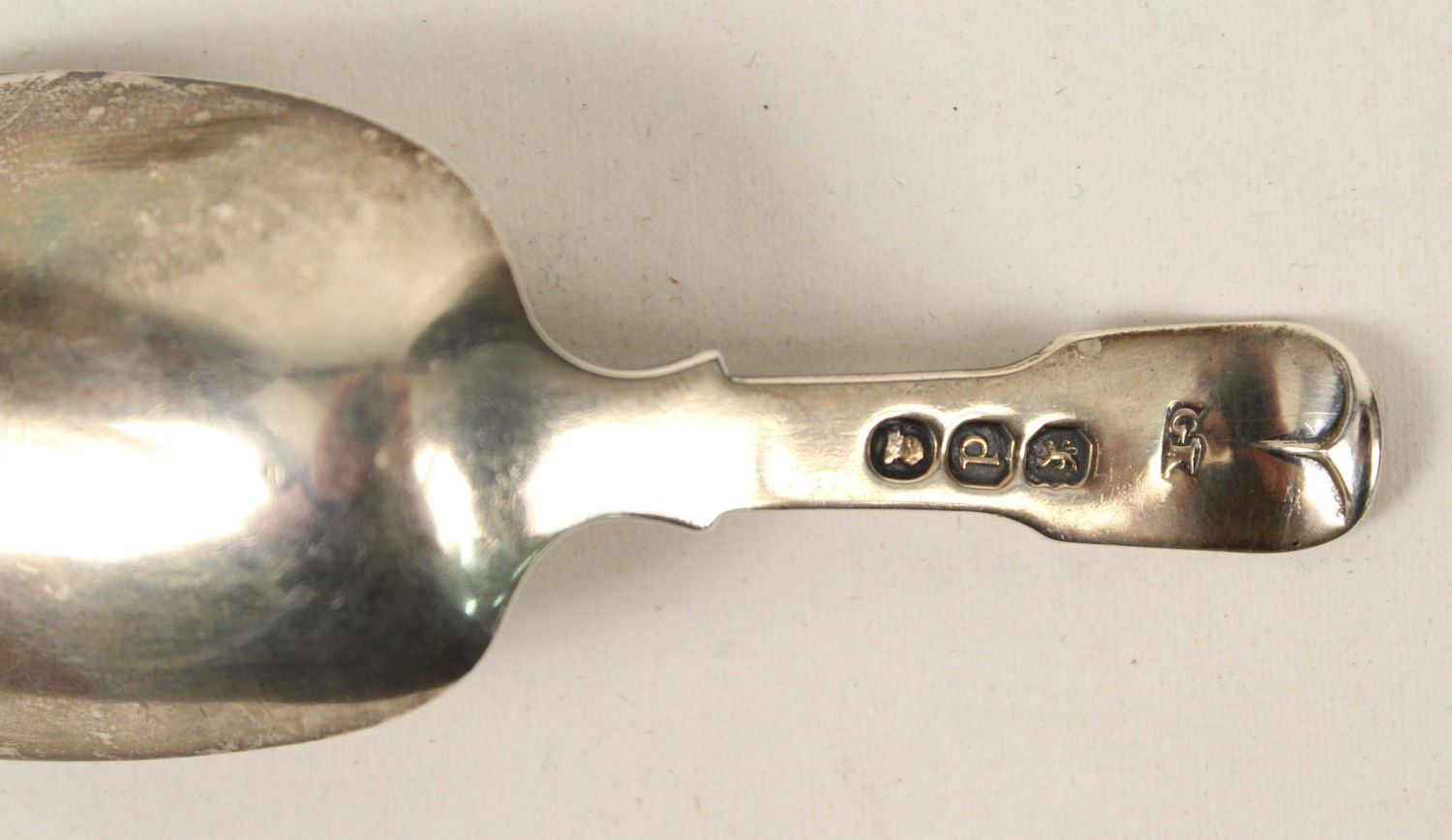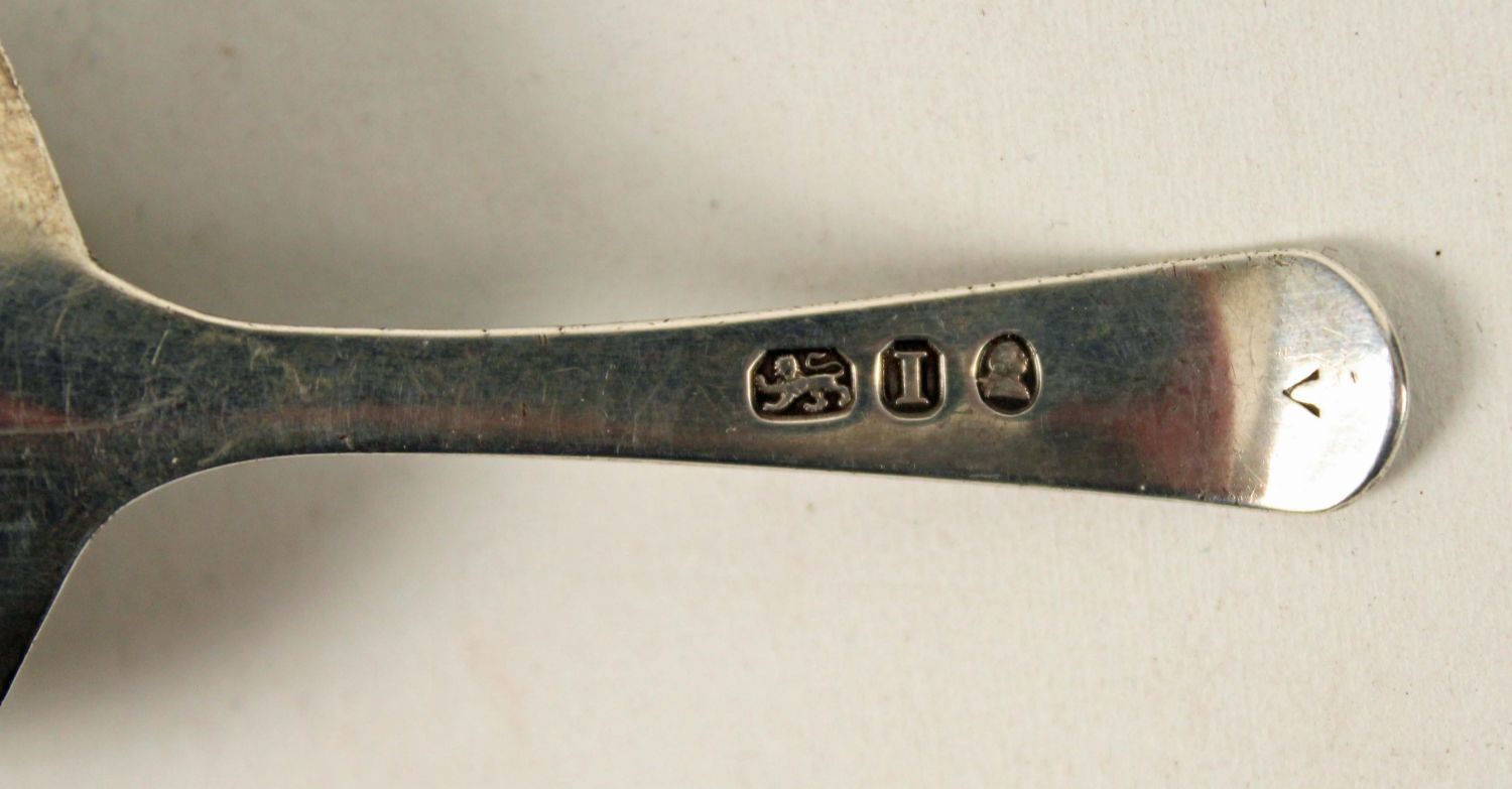 *WE WILL NOT ACCEPT CREDIT CARD AS PAYMENT FOR THIS LOT* Group of Eight English Sterling Silver Tea Caddy Spoons with Lion Mark. The spoon lengths measure 2 3/4" – 3 3/4" with a bowl diameter of approx. 1 3/8" – 1 5/8". Long Total weight 2.9 Ounces Troy. Condition – Overall good condition with four monogrammed.