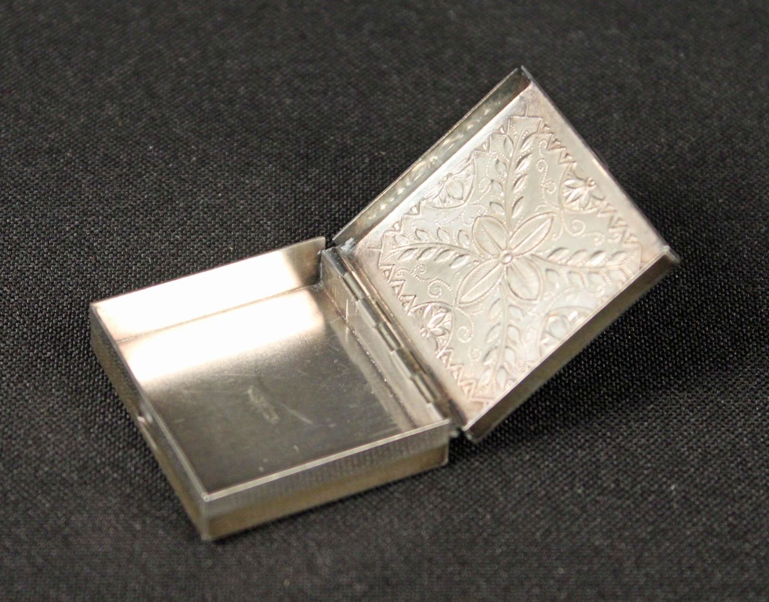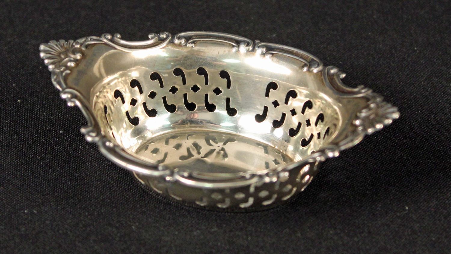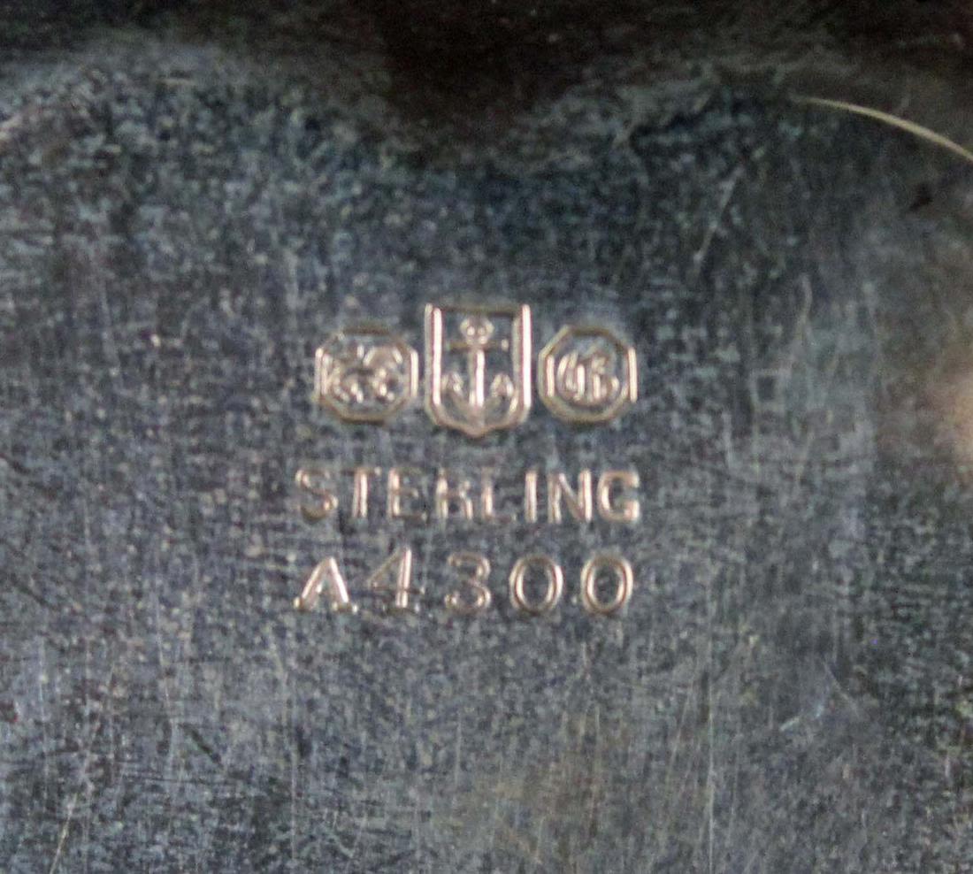 *WE WILL NOT ACCEPT CREDIT CARD AS PAYMENT FOR THIS LOT* Mixed Group of Sterling Silver Dishes, Etc. (1) Chantilly Gorham sterling silver heart shaped pierced nut dish. (1) Gorham Cromwell sterling silver nut bowl basket dish. (1) S. Kirk & Son No. 9 sterling silver three roses floral bookmark. Engraved on verso "Fuqua" and "Missy" on front. Measures 2 1/2" long. (1) Sterling silver art nouveau bookmark floral heart. Measures 3 1/4" long. (1) Sterling silver 19th C. East Lake decorated pill box. Measures 1 1/4" square. (1) 19th C. English silver mint scoop. Measures 3 1/2" long. The total weight is 2.9 ozt. Condition- Basket has dent at bottom. Other items are in good condition. See photos.