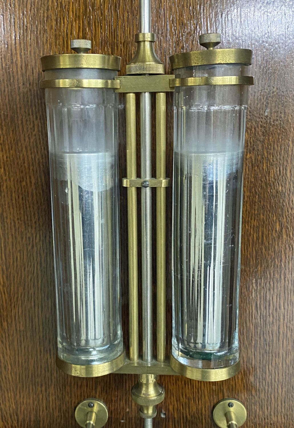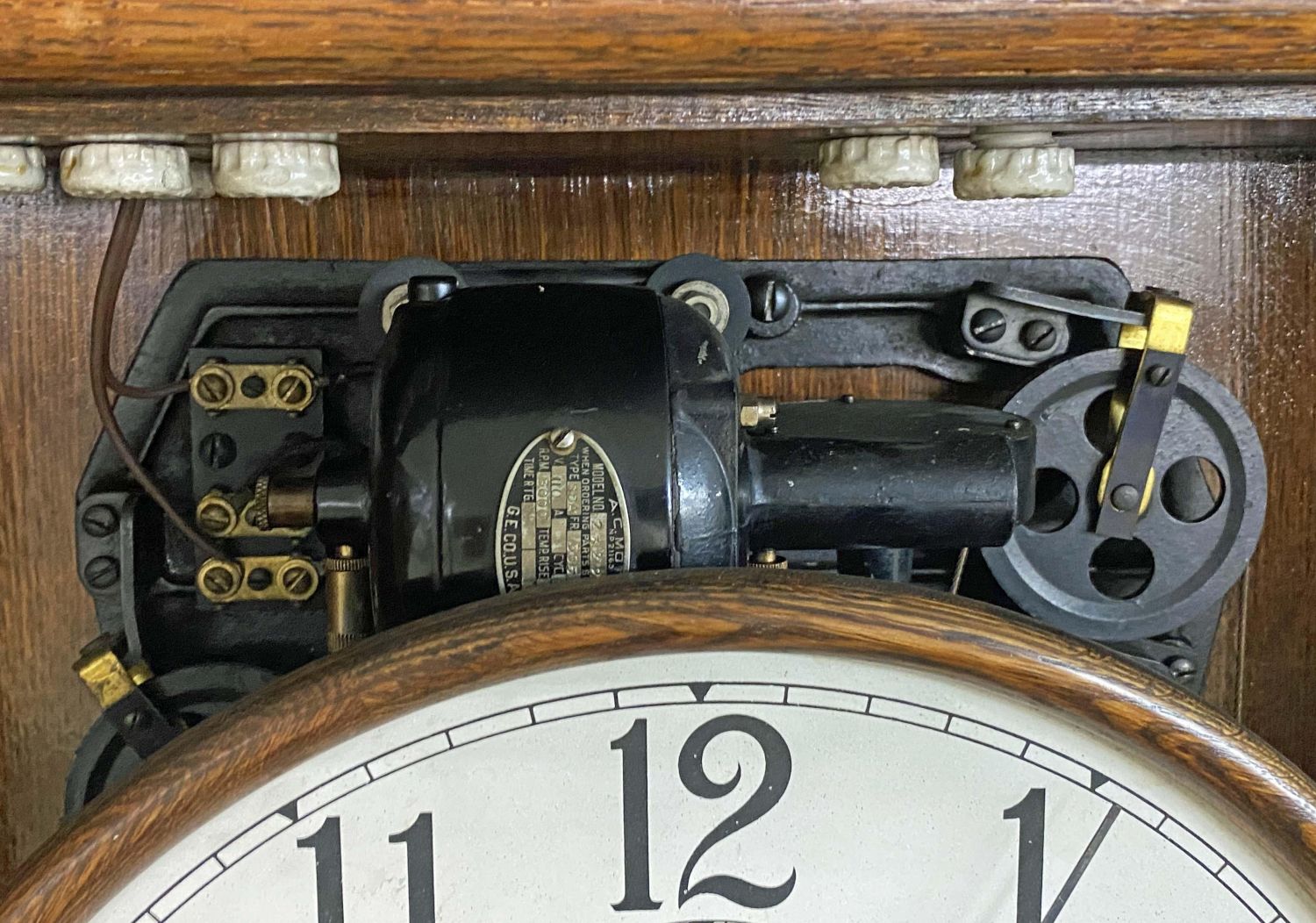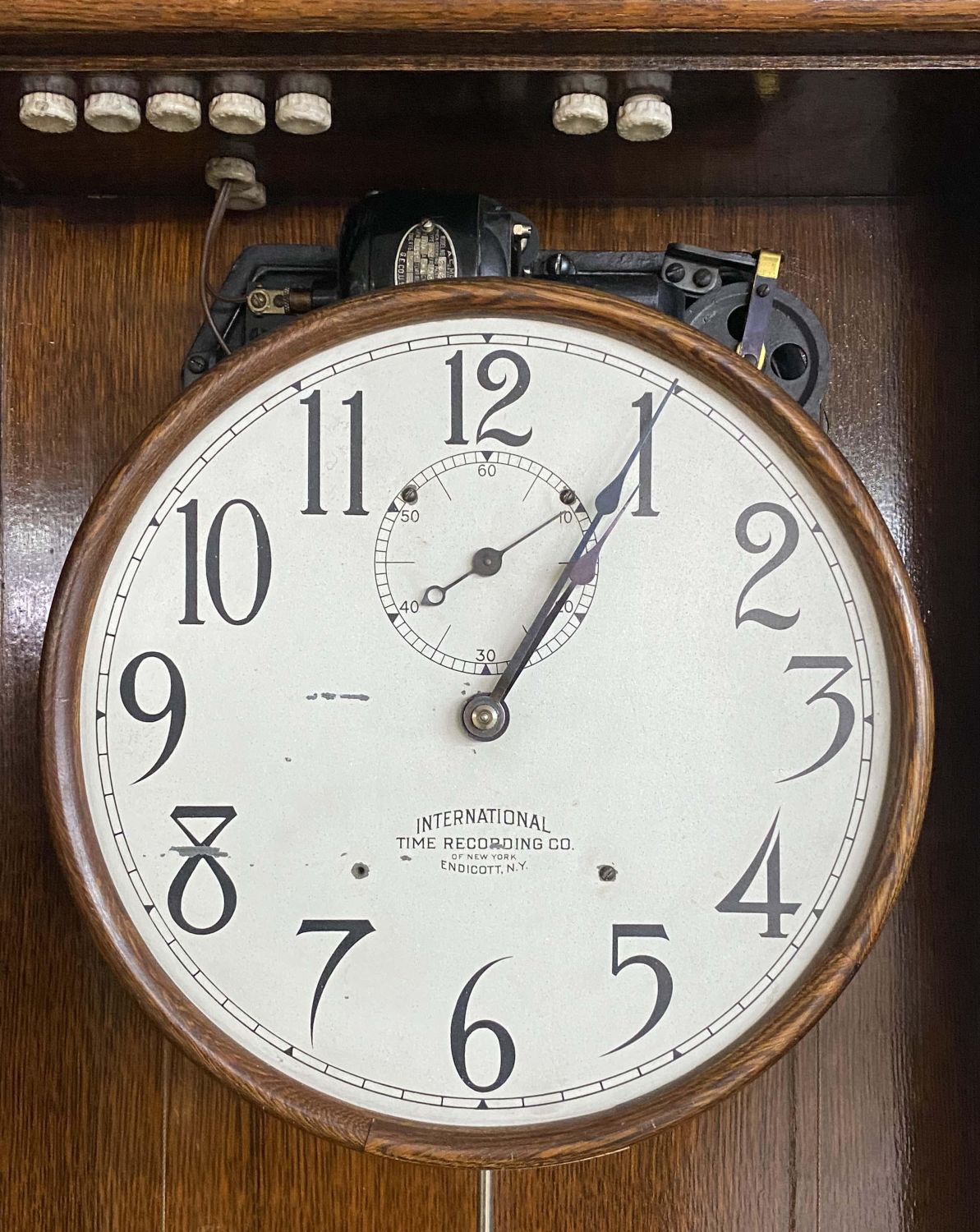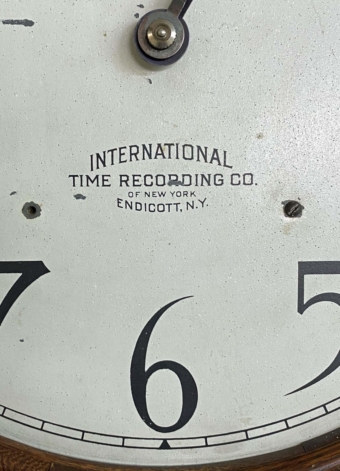 International Time Recording Model 16, Circa 1930 . One of the most accurate time clocks available at the time. The #16 was commissioned by the Santa Fe Railroad. The clock has the original GE electric motor and is a self winding electric weight clock. The clock self winds every two to three days and is accurate to within 10 seconds per month. The oak cased clock measures 62 3/4" high x 21" wide x 8 3/8" deep. This clock will not be sold to international buyers or buyers located in states, municipalities Etc. that prohibit the sale or importation of Mercury. The presence of mercury in this lot will require the winning buyer or buyer’s agent to pick up the clock at our auction house. We will not ship this clock. Auctioneers have not attempted to test or start the clock. Condition – Believed to be in running order. The clock was running when removed from home. Auctioneers have not attempted to test or start the clock. Auction company does not guarantee this clock to run. Does come with a key. This clock will not be sold to international buyers or buyers located in states, municipalities Etc. that prohibit the sale or importation of Mercury. The presence of mercury in this lot will require the winning buyer or buyer’s agent to pick up the clock at our auction house. We will not ship this clock.