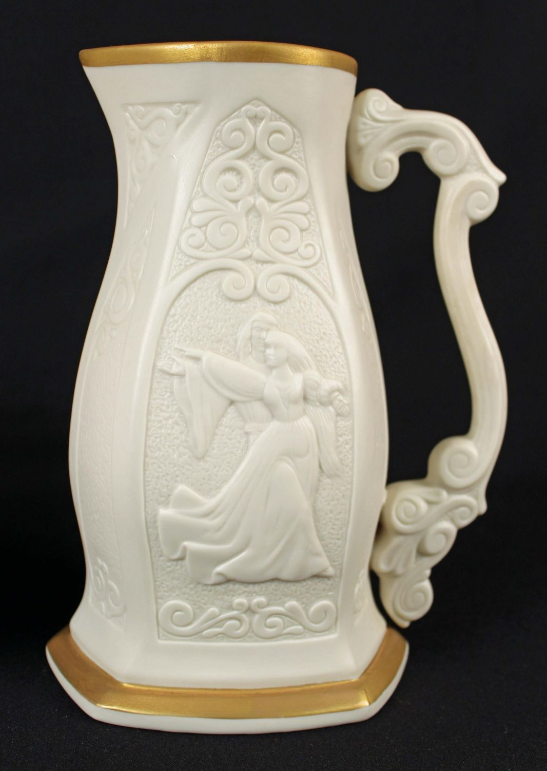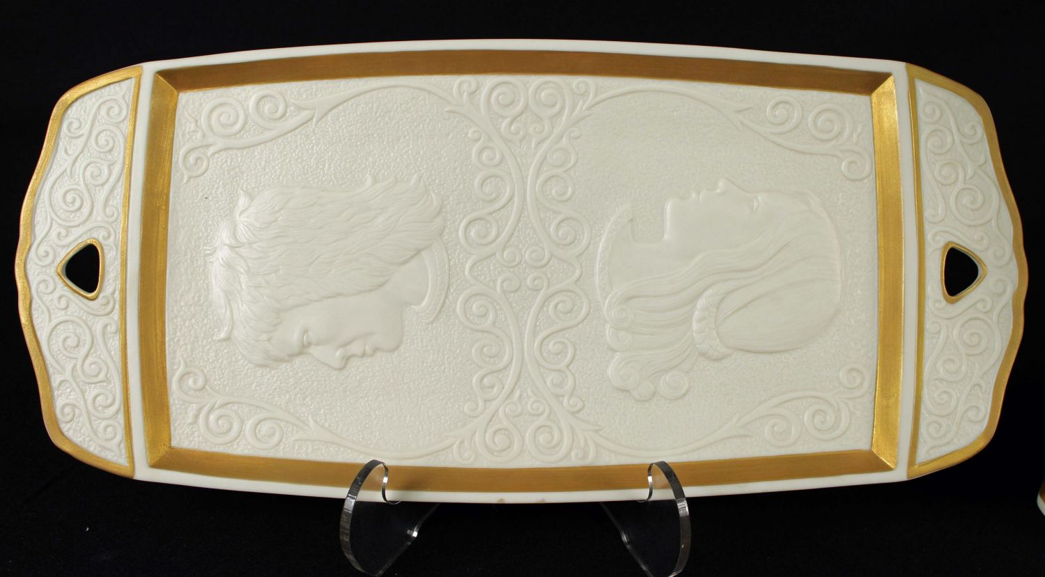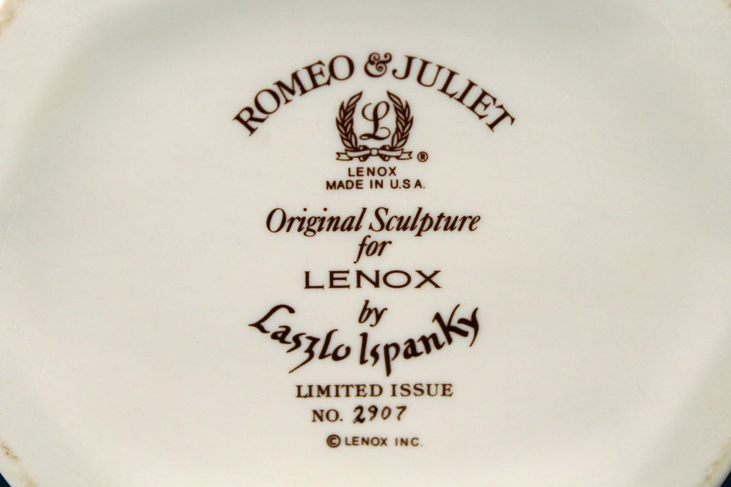 Lenox China Romeo & Juliet Pitcher and Tray From an Original Sculpture by Laszlo Ispanky Commissioned by Lenox. Both pieces have the original Certificate of Registry and are both 1 of 5,000 issued. The pitcher measures 9" H. Tray measures 7 3/8" X 16 1/4". Condition – Both pieces are in good condition and damage free.